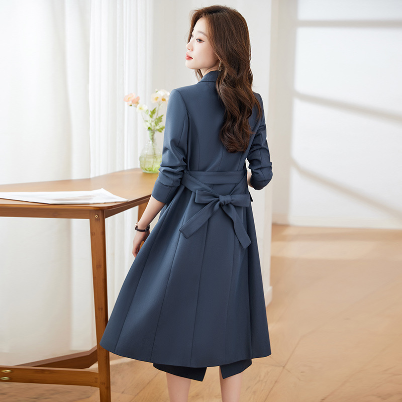 咖色风衣外套女春秋新款韩版英伦风气质名媛长款大衣西服外套