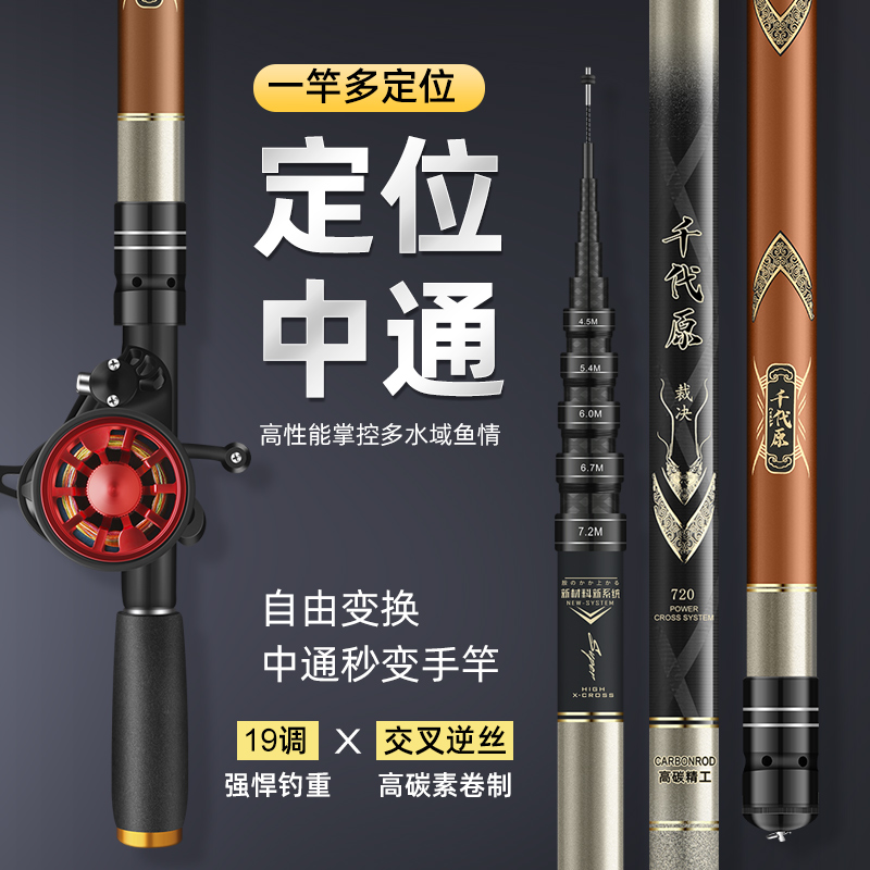 定位中通杆内走线超轻超硬19调短节钓鱼竿手竿定位中通竿一杆多用