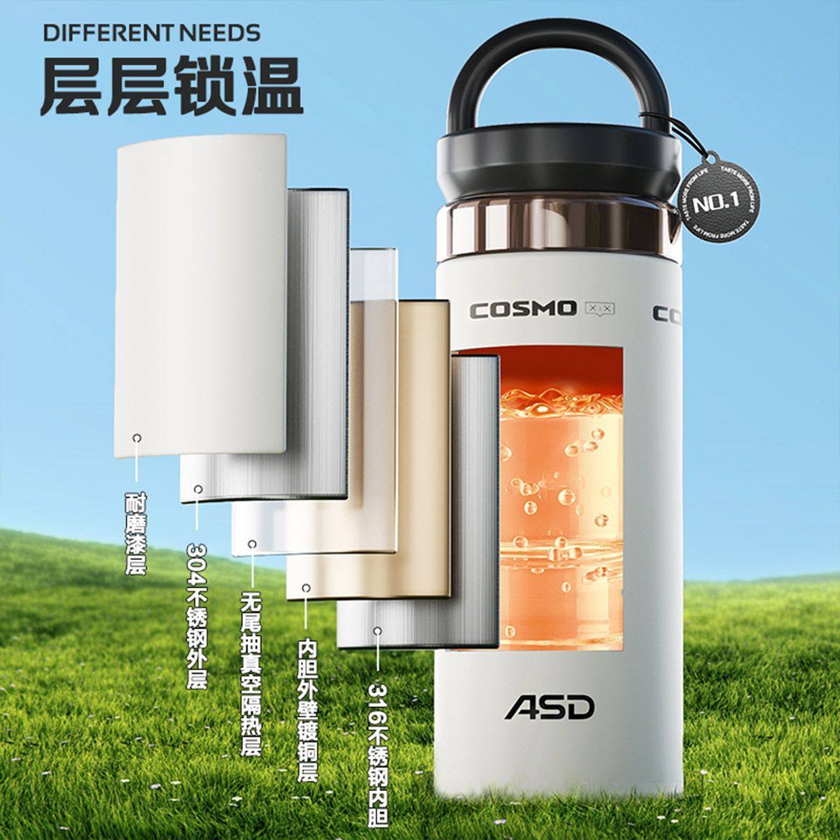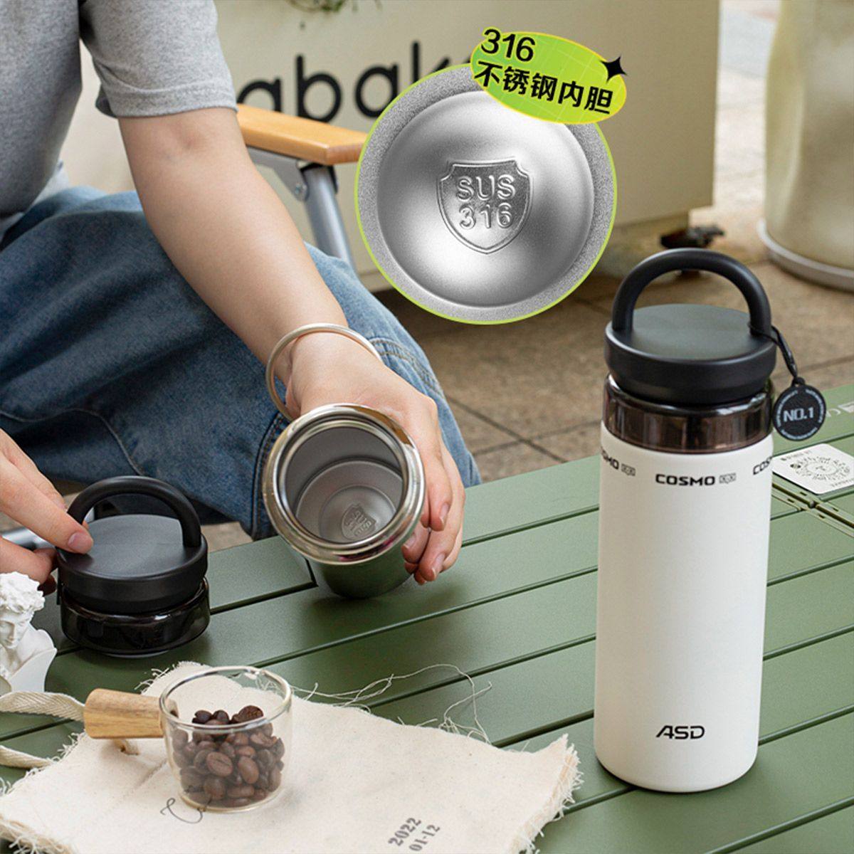 爱仕达保温杯316不锈钢水杯高颜值大容量学生女生户外便携杯子
