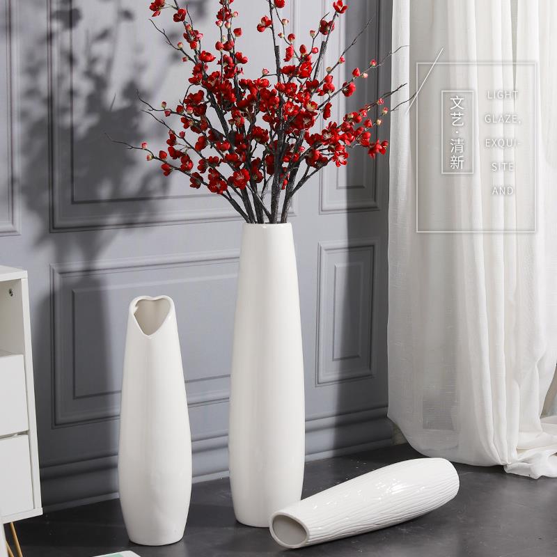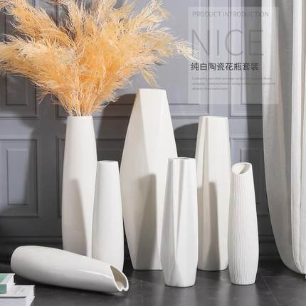 陶瓷花瓶大号客厅落地摆件干 干燥花插花北欧创意简约白色现代家