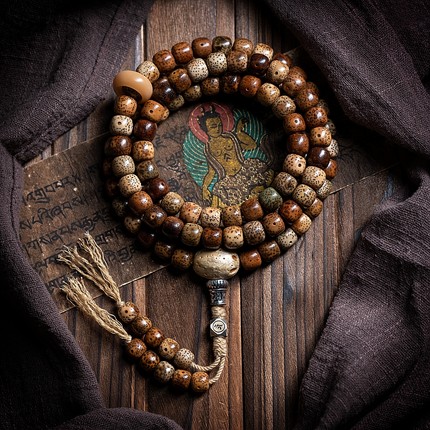卡杰格朵{清欢系列}.老料星月菩提子佛珠手串配饰陈籽手链108颗