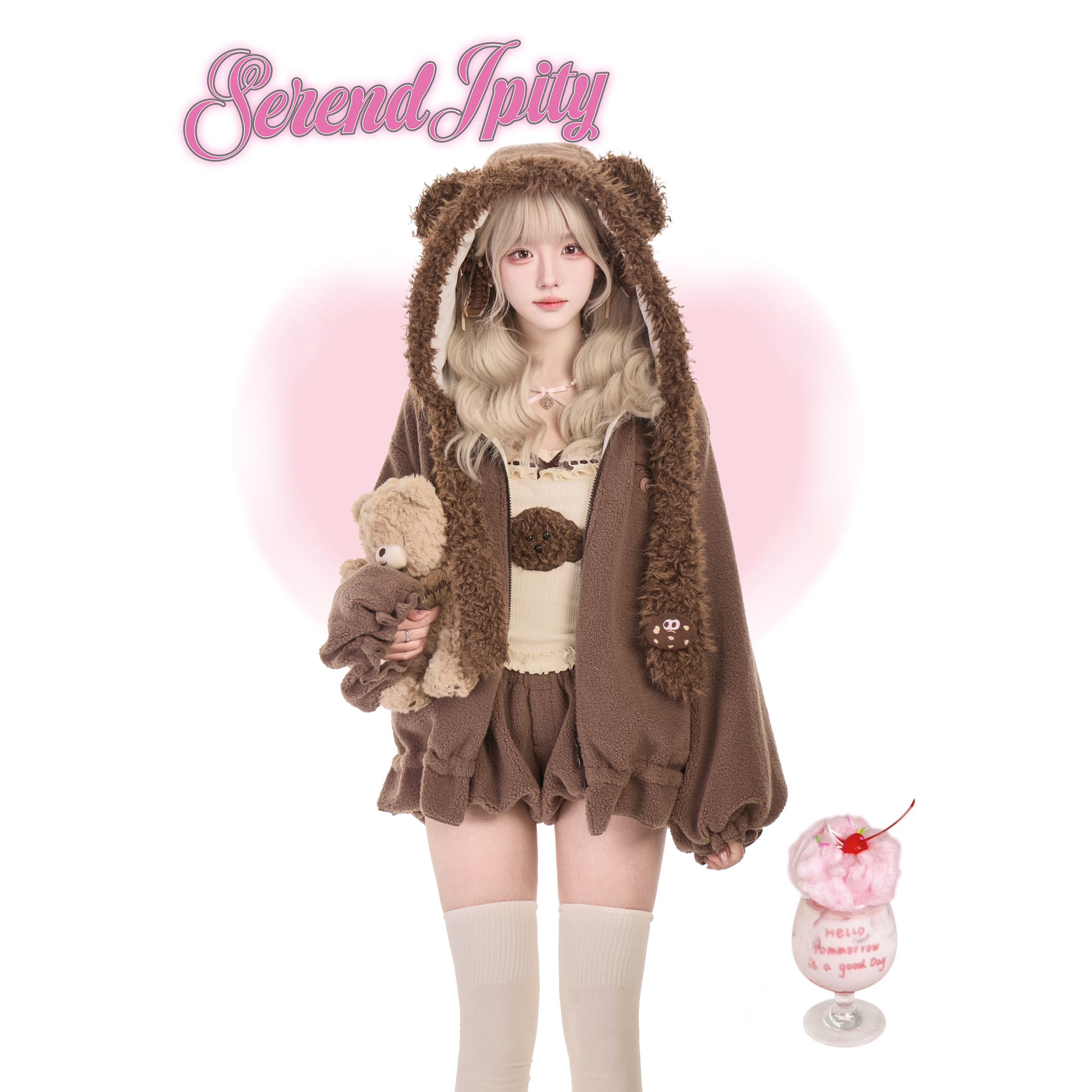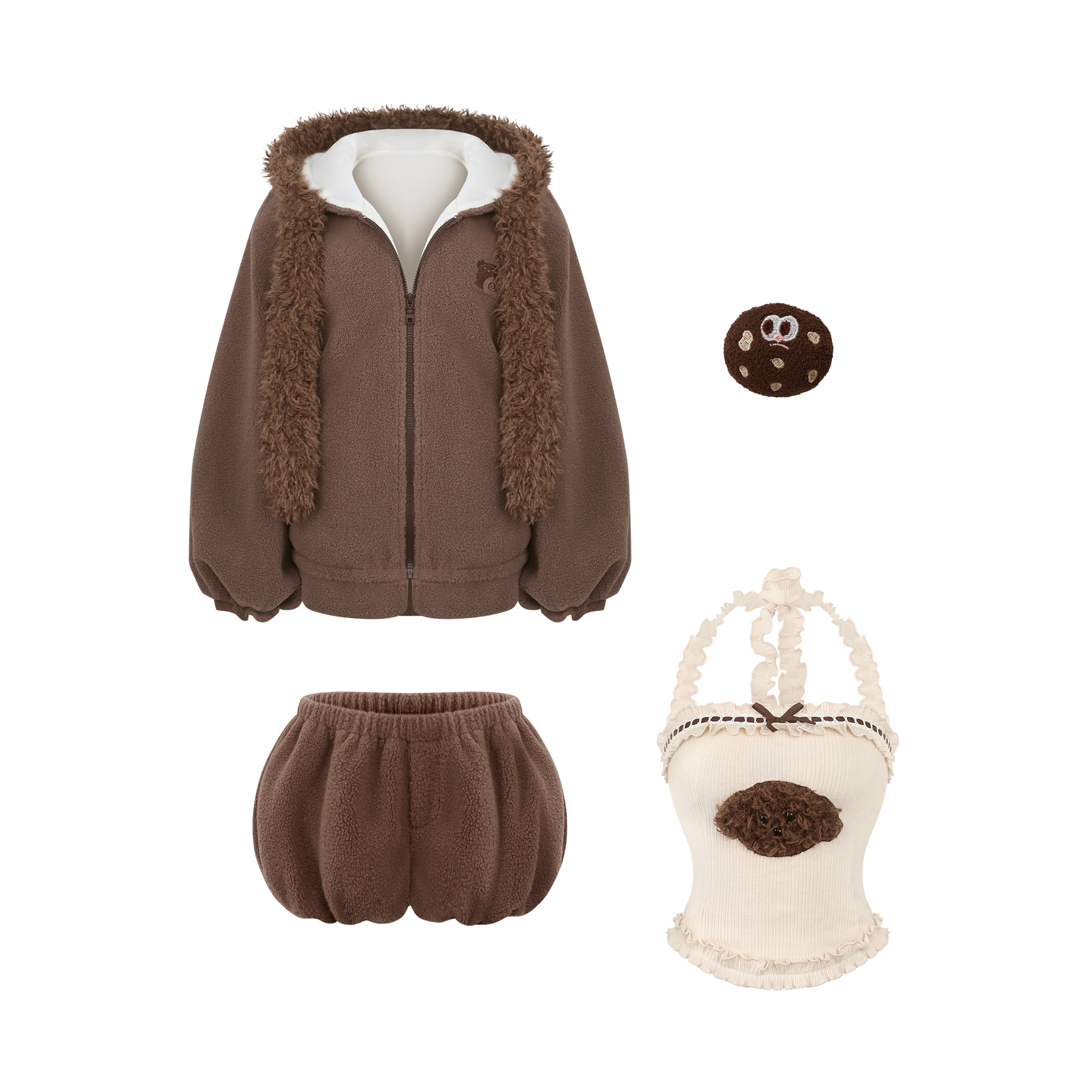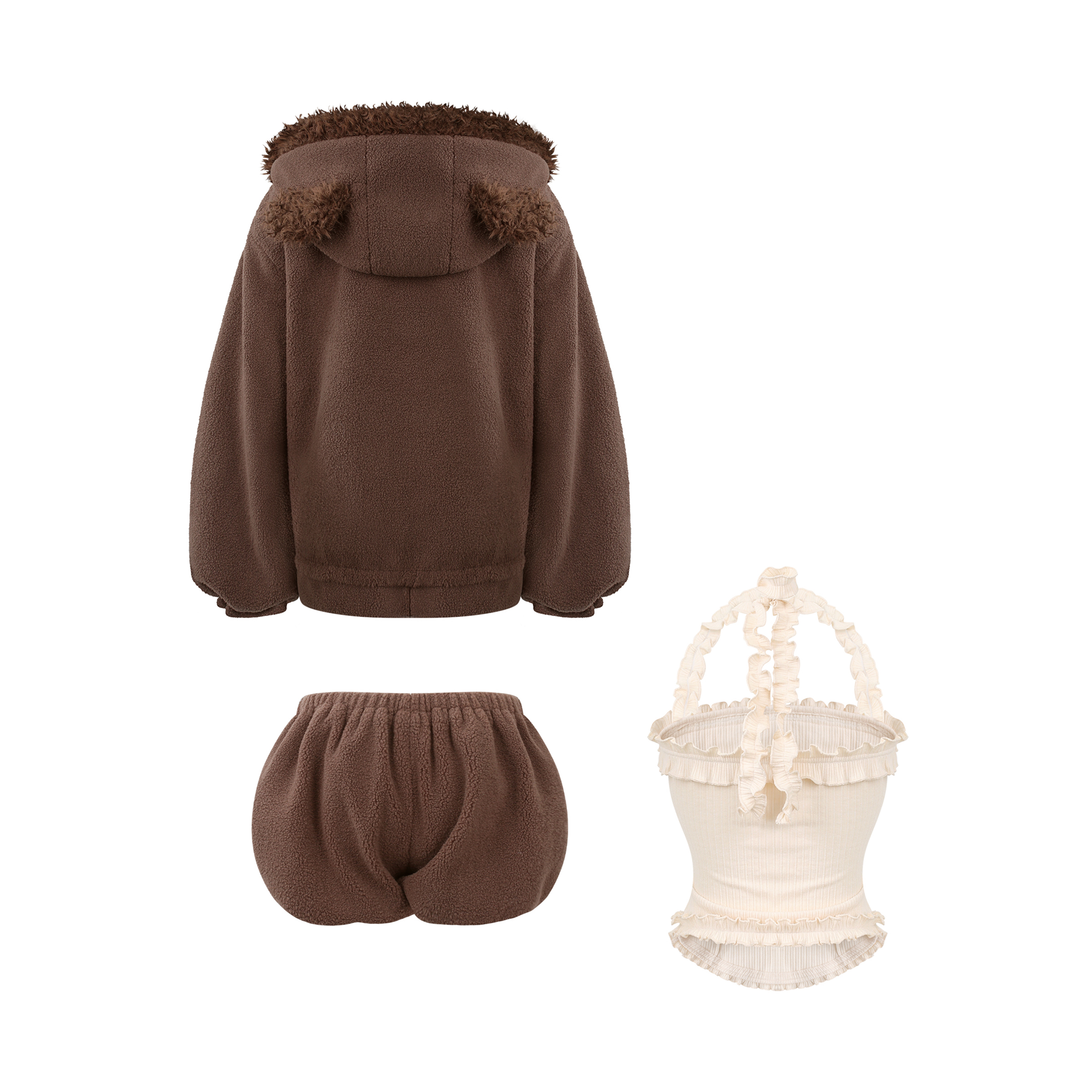 少女椰子【日常系】生巧慕斯冬季杏色针织吊带+棕色短裤+外套套装