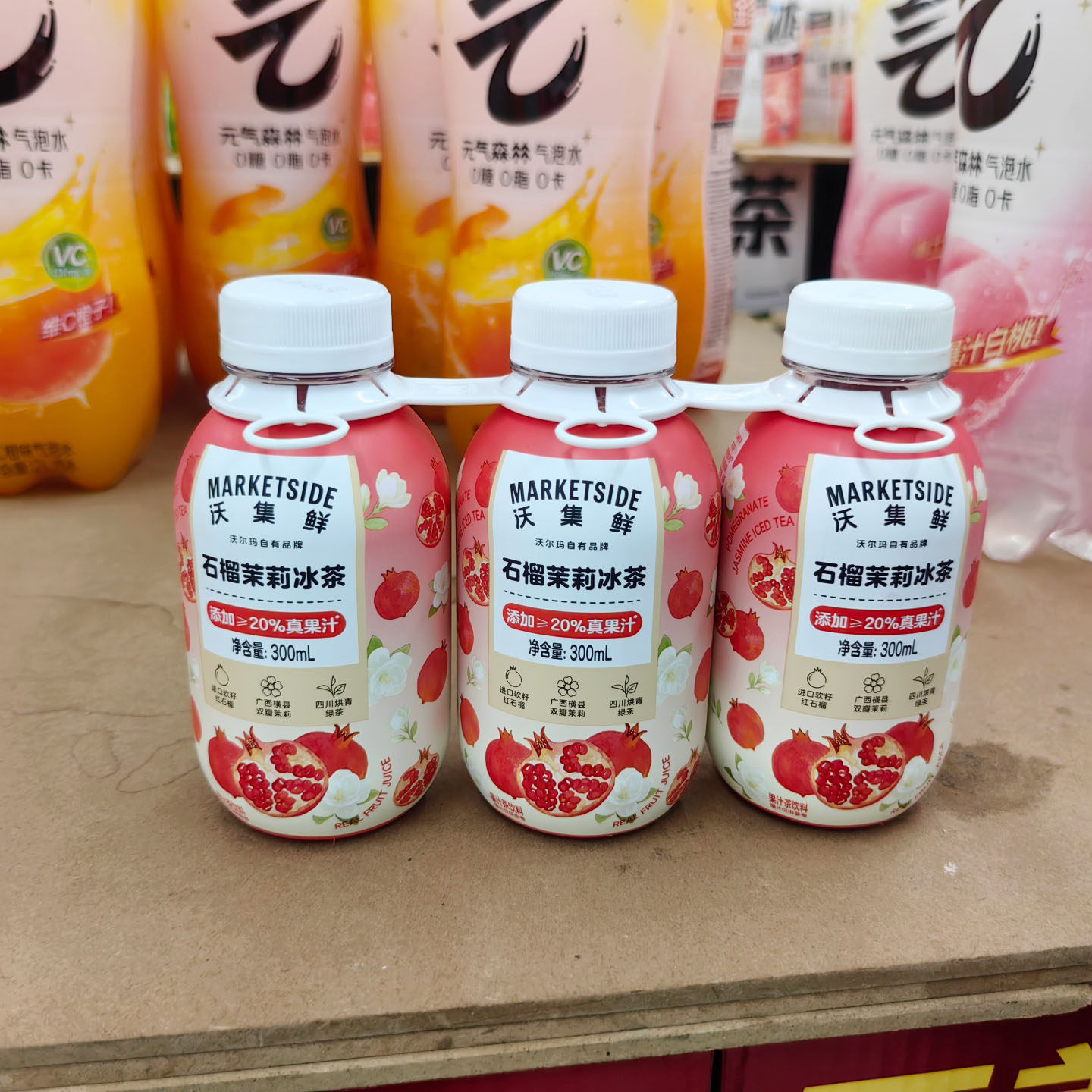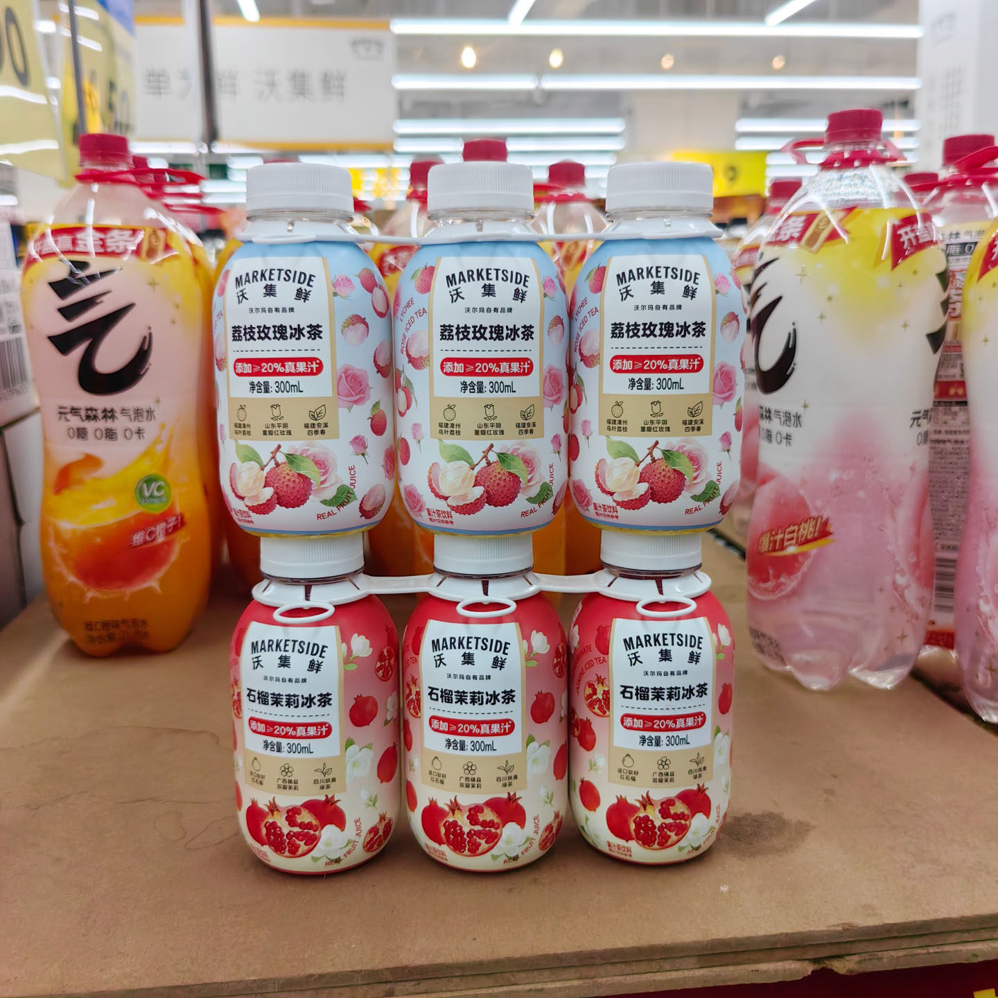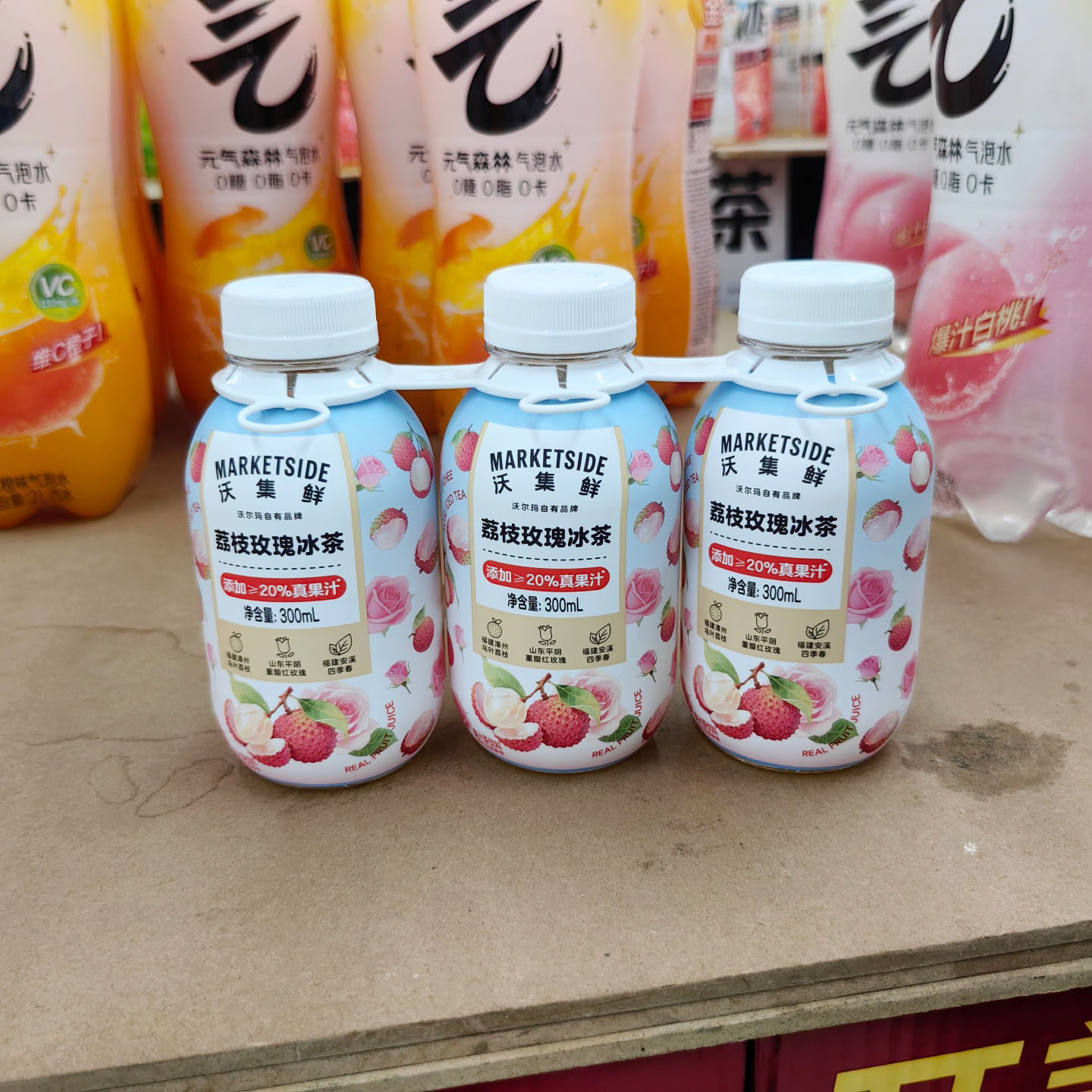 沃集鲜荔枝玫瑰冰茶石榴茉莉冰茶300mL*3瓶组合装沃尔玛正品代购