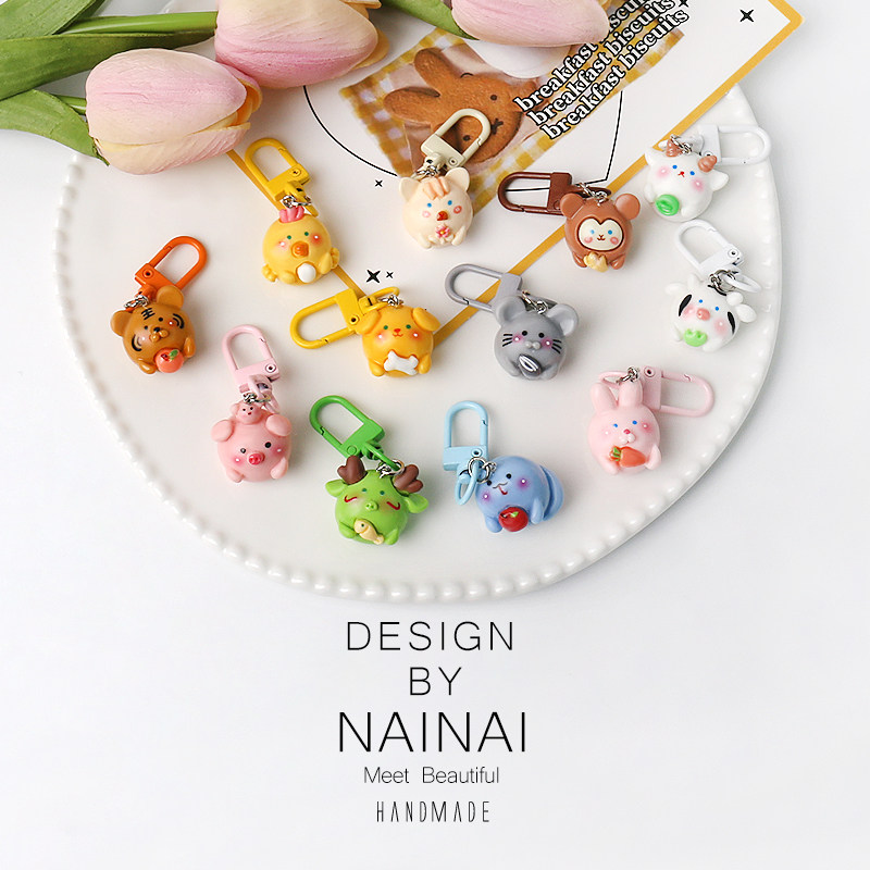 超萌可爱圆形十二生肖动物立体钥匙扣个性包包挂件简约挂饰配饰品