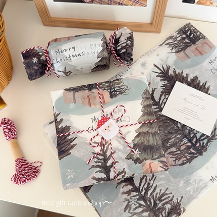 Nice gift~圣诞雪松树雪梨纸创意节日礼物包装纸烘焙服装打包纸