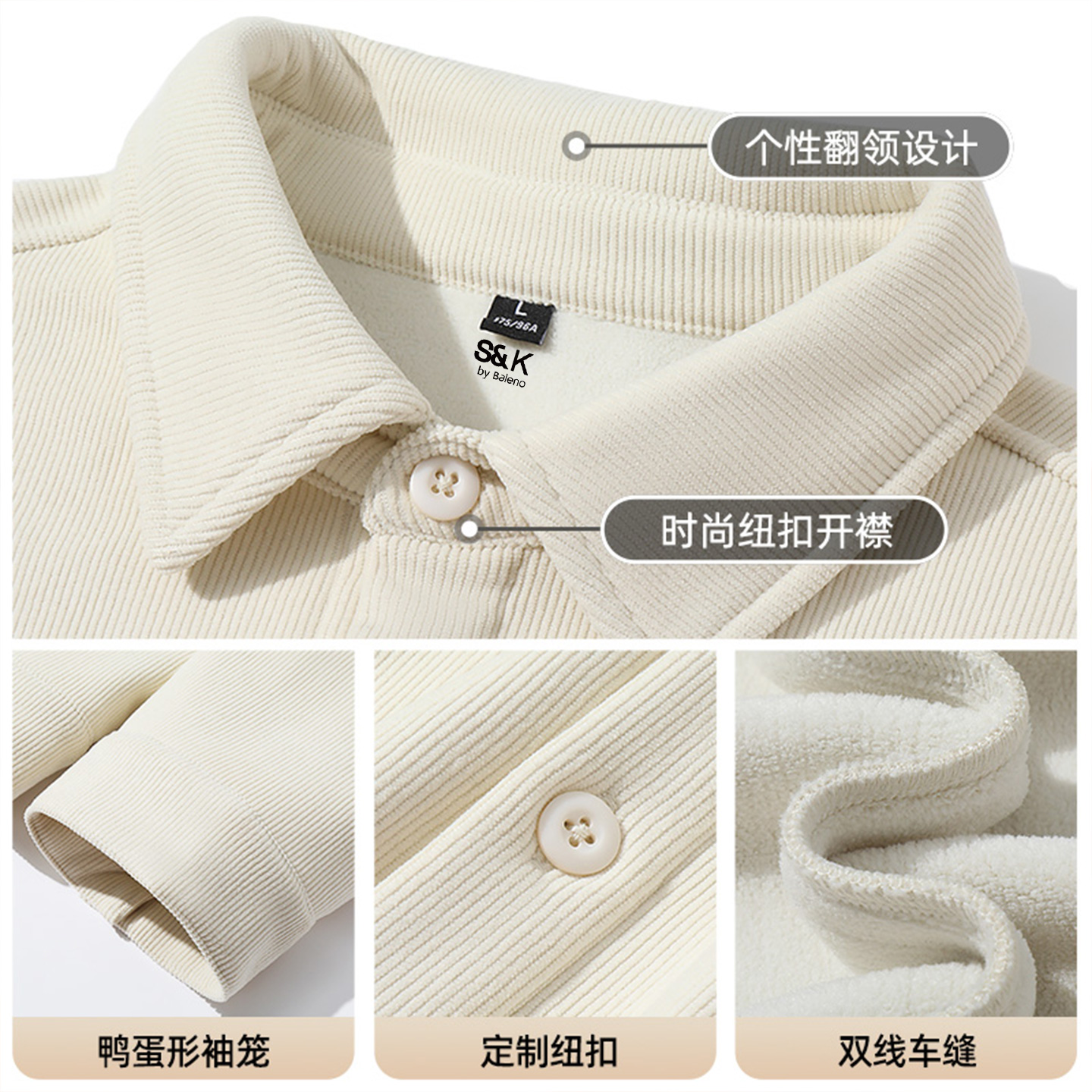 班尼路SK系列日系复古男士衬衫男秋冬季加绒保暖灯芯绒翻领长袖LF