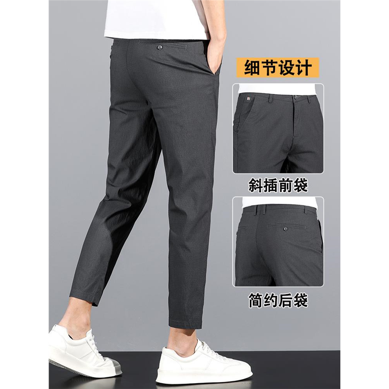 以纯YISHION休闲裤男士夏季薄款修身直筒九分裤潮流弹力小脚男生