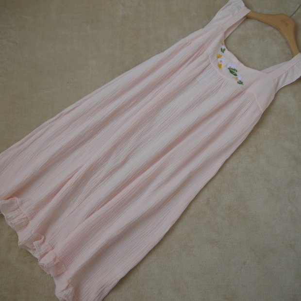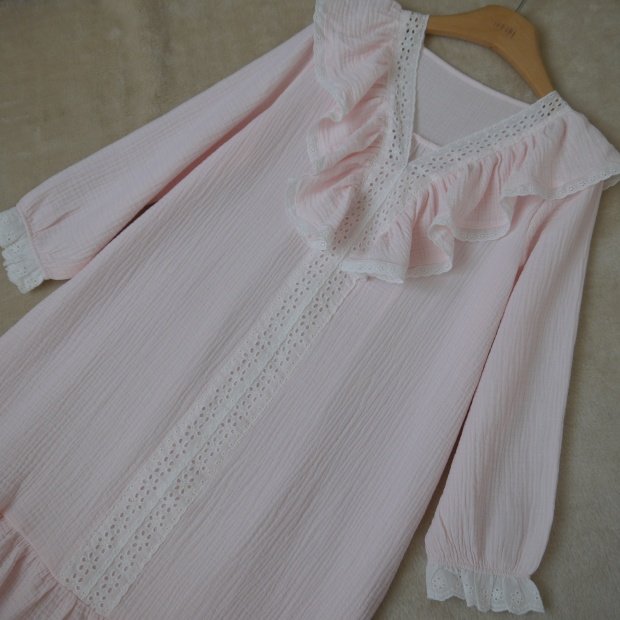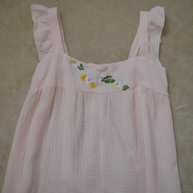 夏季女装棉纱睡裙家居服长裙蕾丝纯棉吊带裙甜美睡衣