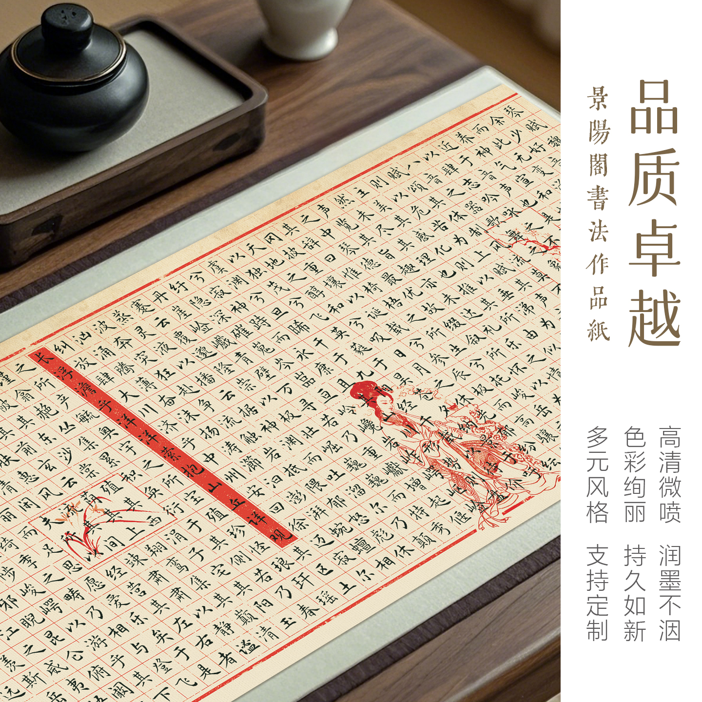 墨上花颜如玉长卷小楷微喷宣纸毛笔字书法作品纸复古做旧书法长卷带格子加厚半生半熟2cm方格竖格篆隶作品纸
