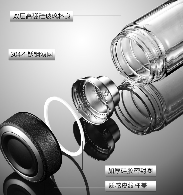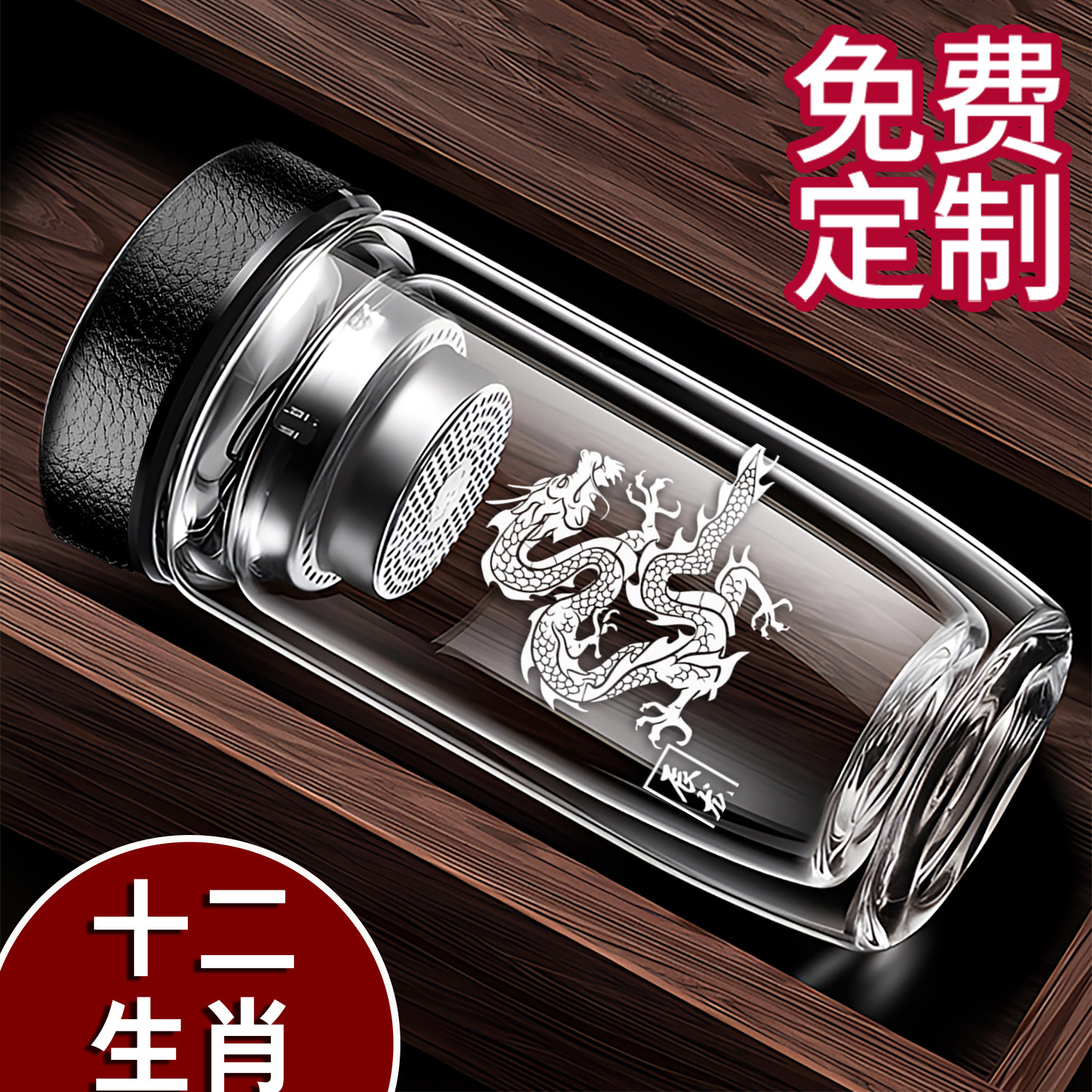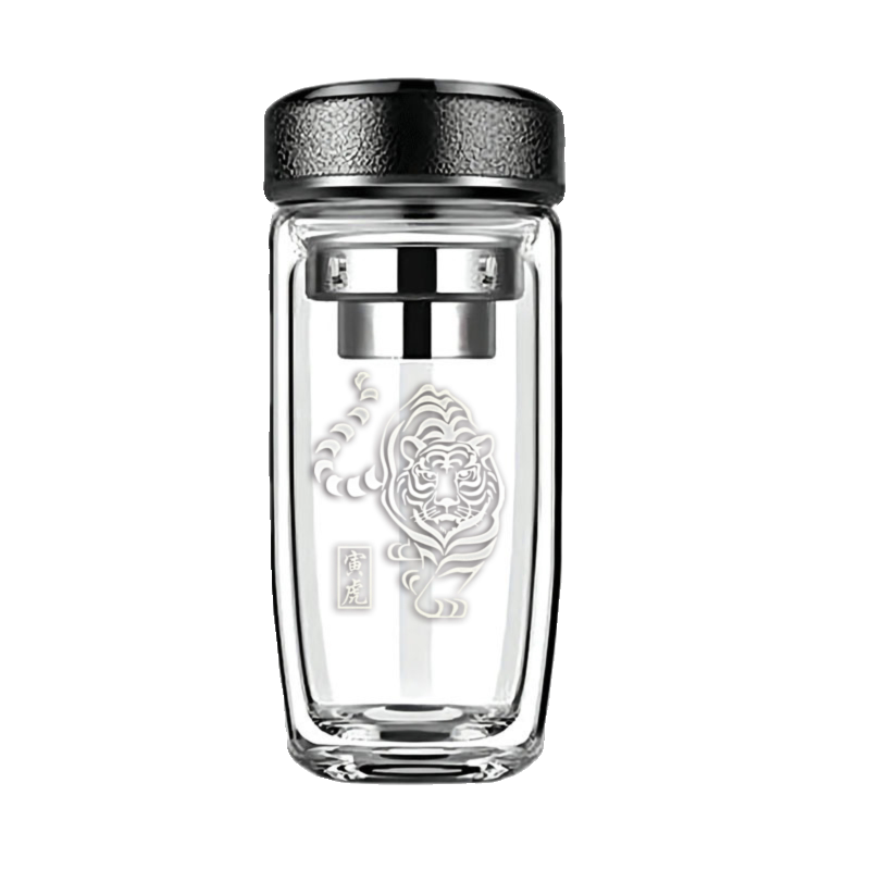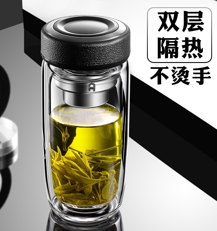 双层鹅蛋玻璃杯加厚男士隔热茶水分离车载定制logo十二生肖泡茶杯