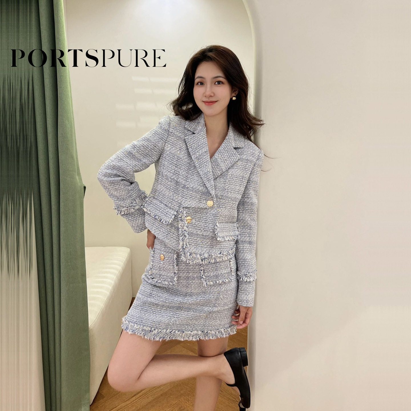 商场同款 宝姿PORTSPURE女装2025秋冬新品香风流苏粗花呢半身裙