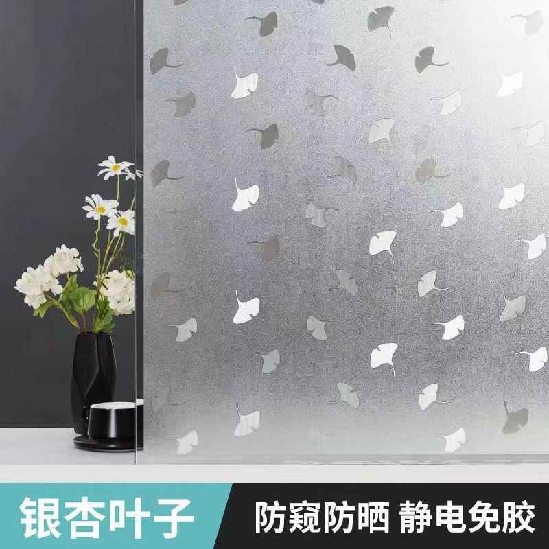 静电银杏叶玻璃贴膜 家用防窥玻璃贴纸 下游热卖浴室家用3D镭射膜