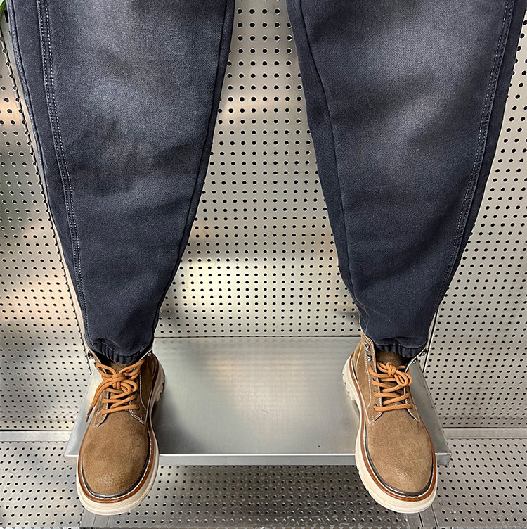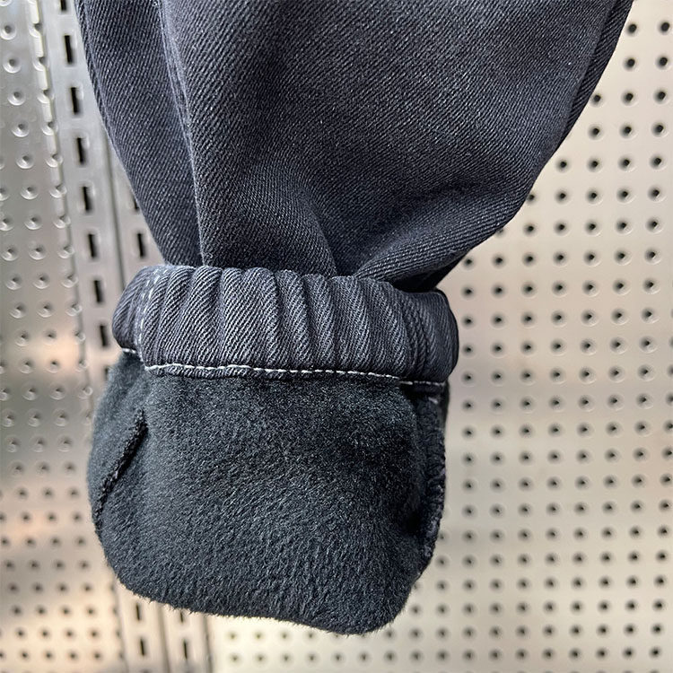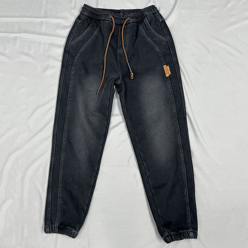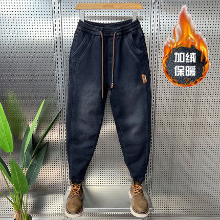 加绒加厚牛仔裤男士秋冬季新款宽松哈伦裤潮流痞帅拼接黑色束脚裤