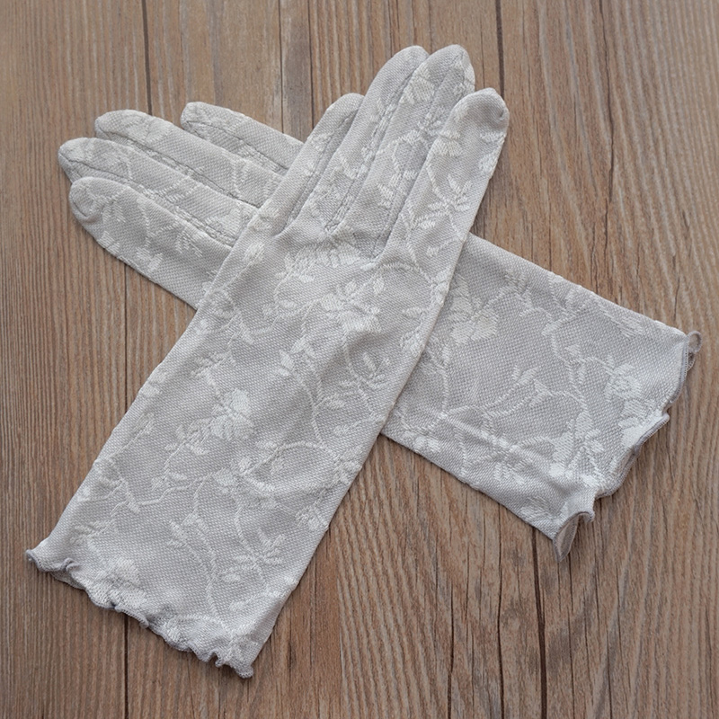 克拉斯卡女士夏季薄款冰丝蕾丝提花透气手套触屏短款出行遮阳