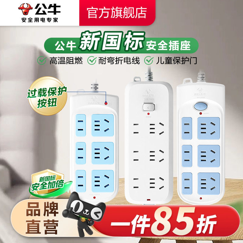 公牛插座接线板插排插线板拖线板插板带线六孔家用办公多插位插板