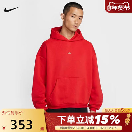 Nike耐克男加绒卫衣红色本命年篮球运动保暖连帽套头衫IM5919-657