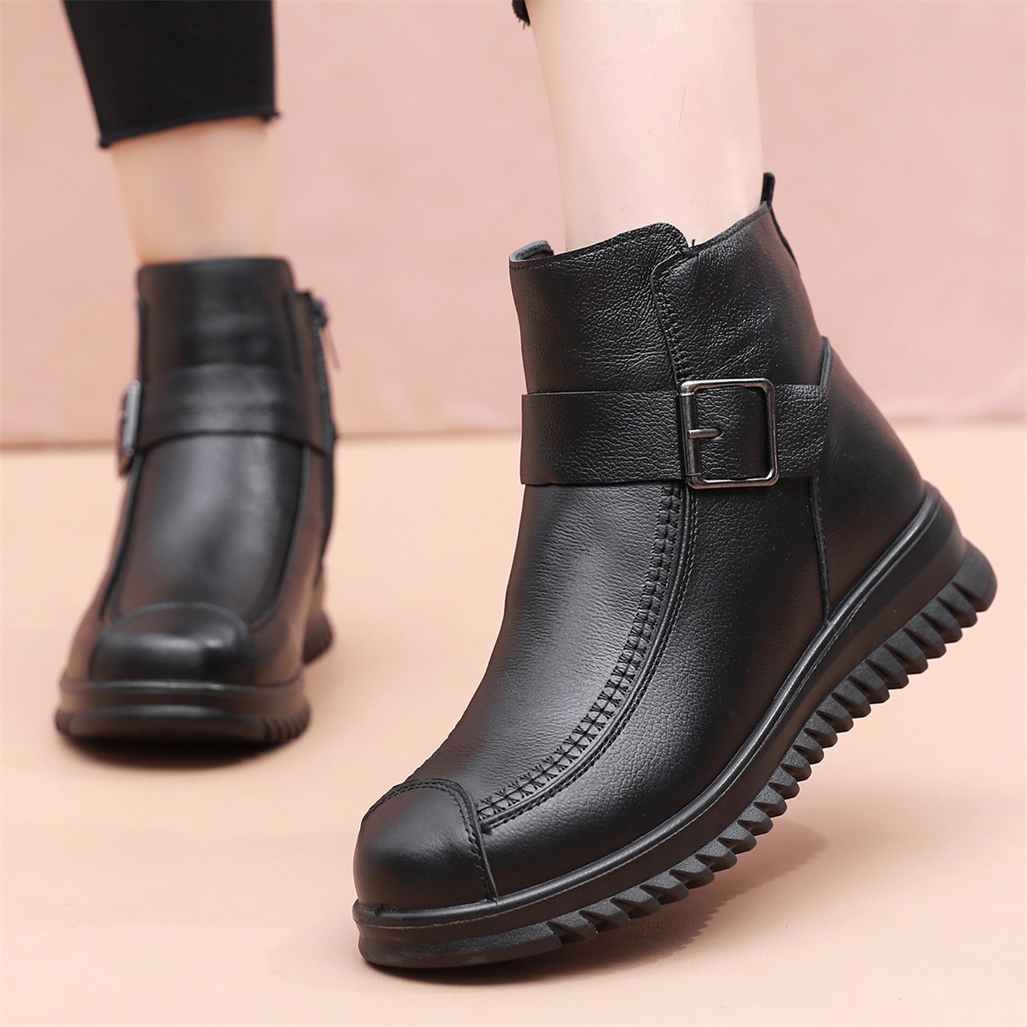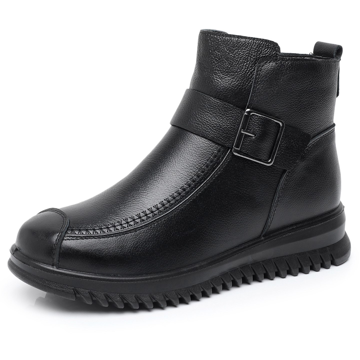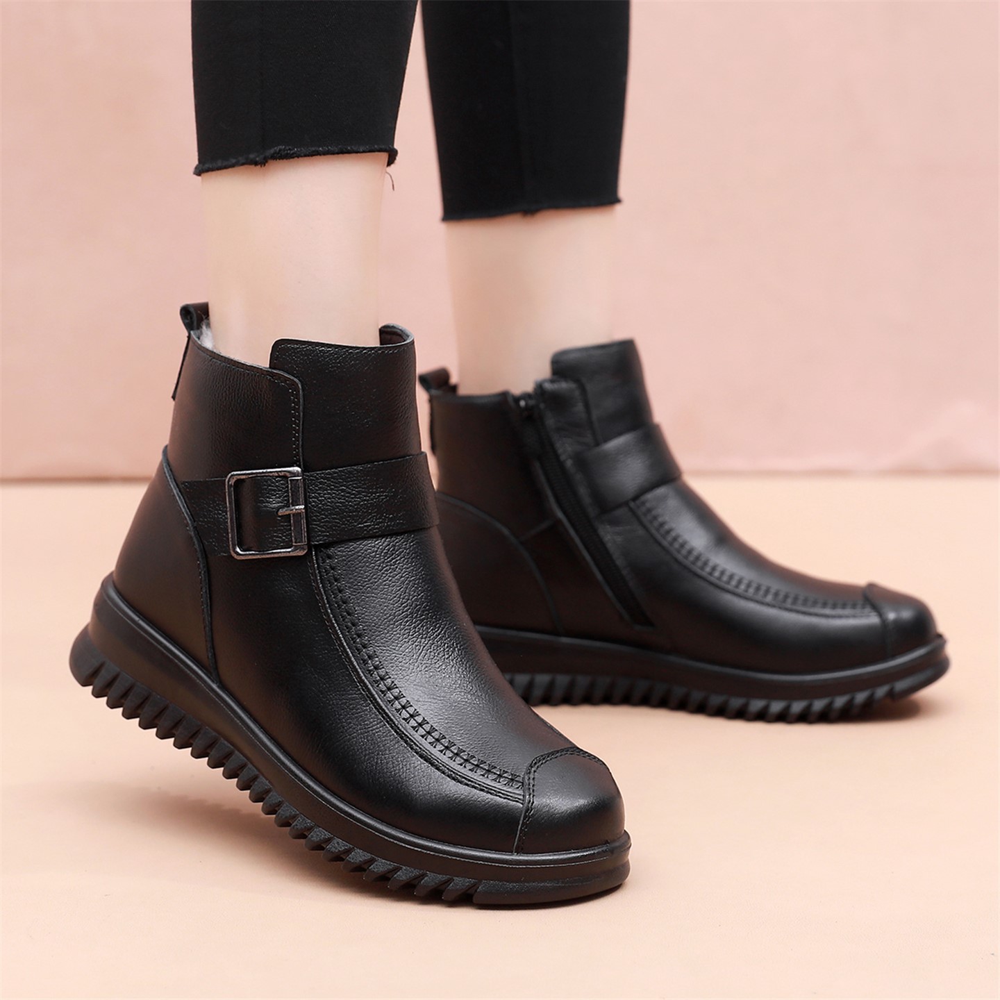 妈妈鞋冬季加绒牛皮软底平底奶奶防滑保暖羊毛中老年老人棉鞋女