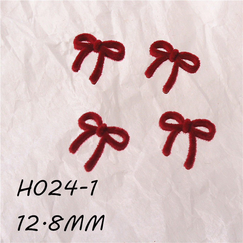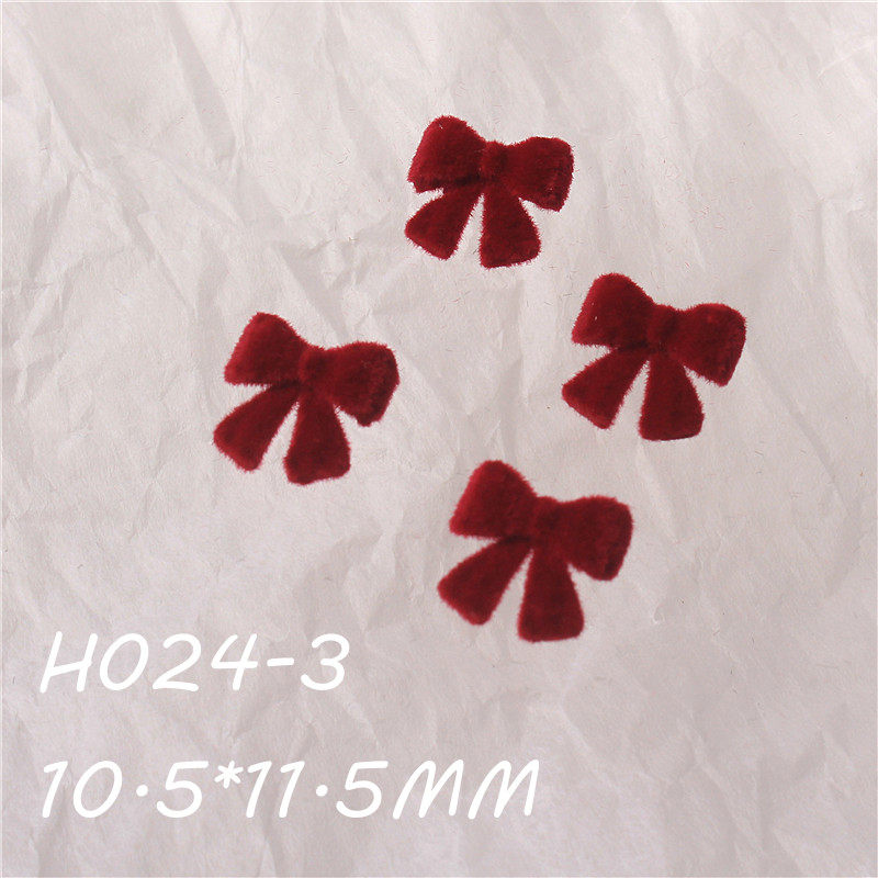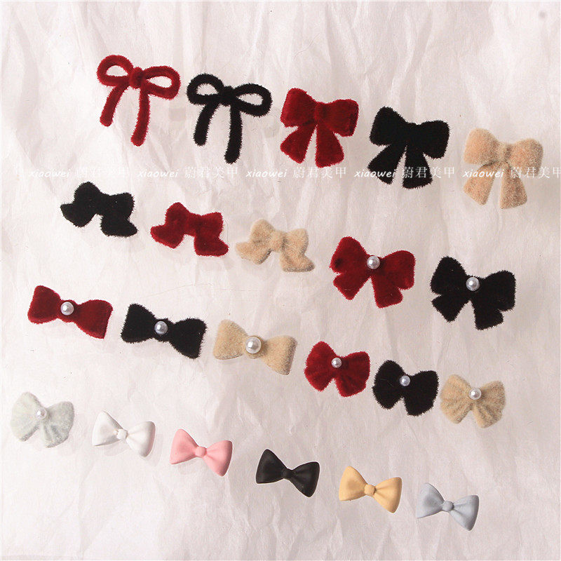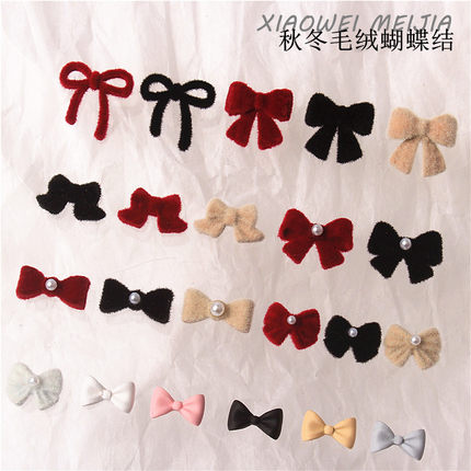 网红新年美甲钻丝绒珍珠蝴蝶结酒红毛绒绒小香风秋冬圣诞指甲饰品