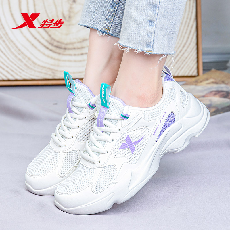 特步女鞋运动鞋网面透气老爹鞋