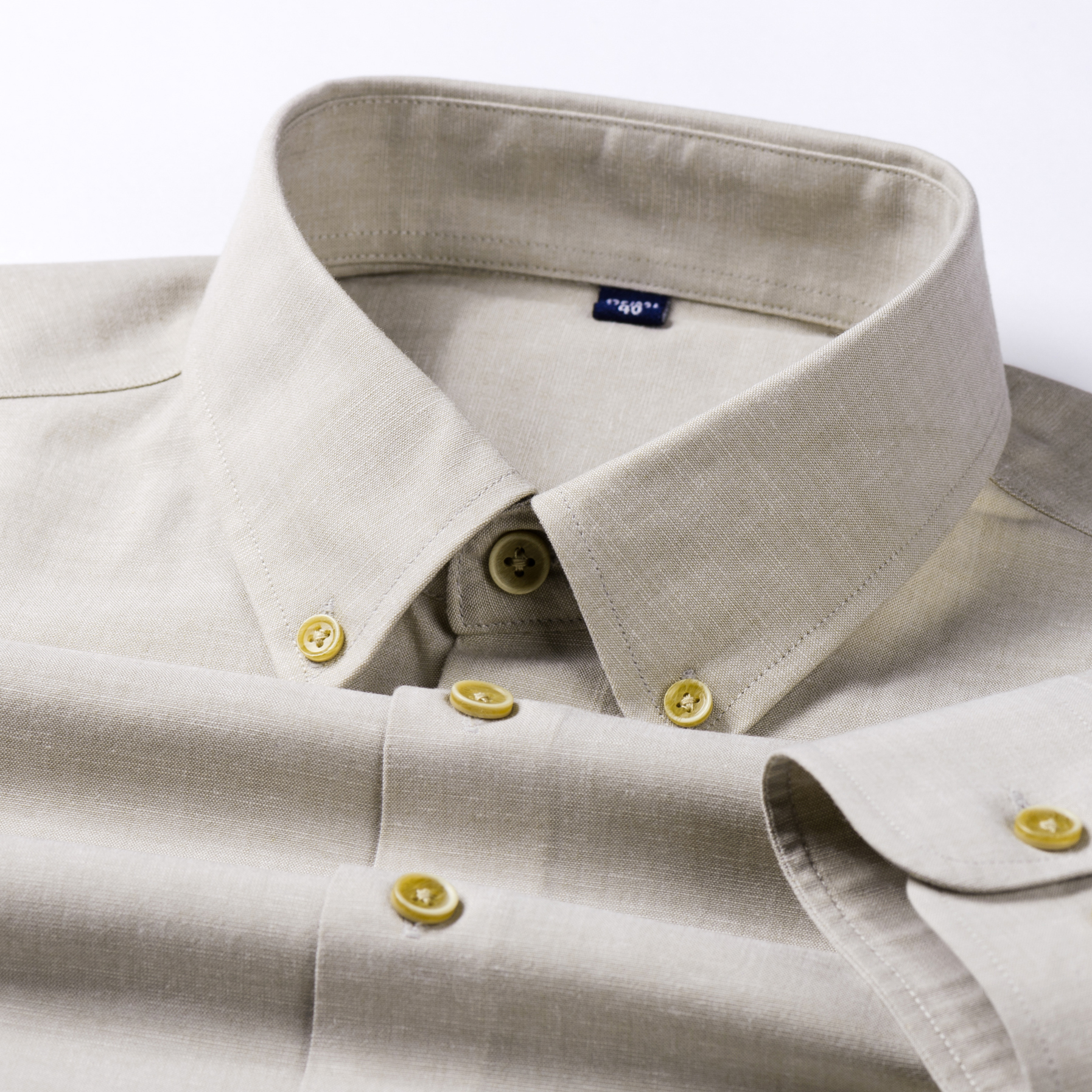 【含亚麻+莫代尔】罗蒙商务休闲衬衫男士长袖港风方领衬衣外套潮