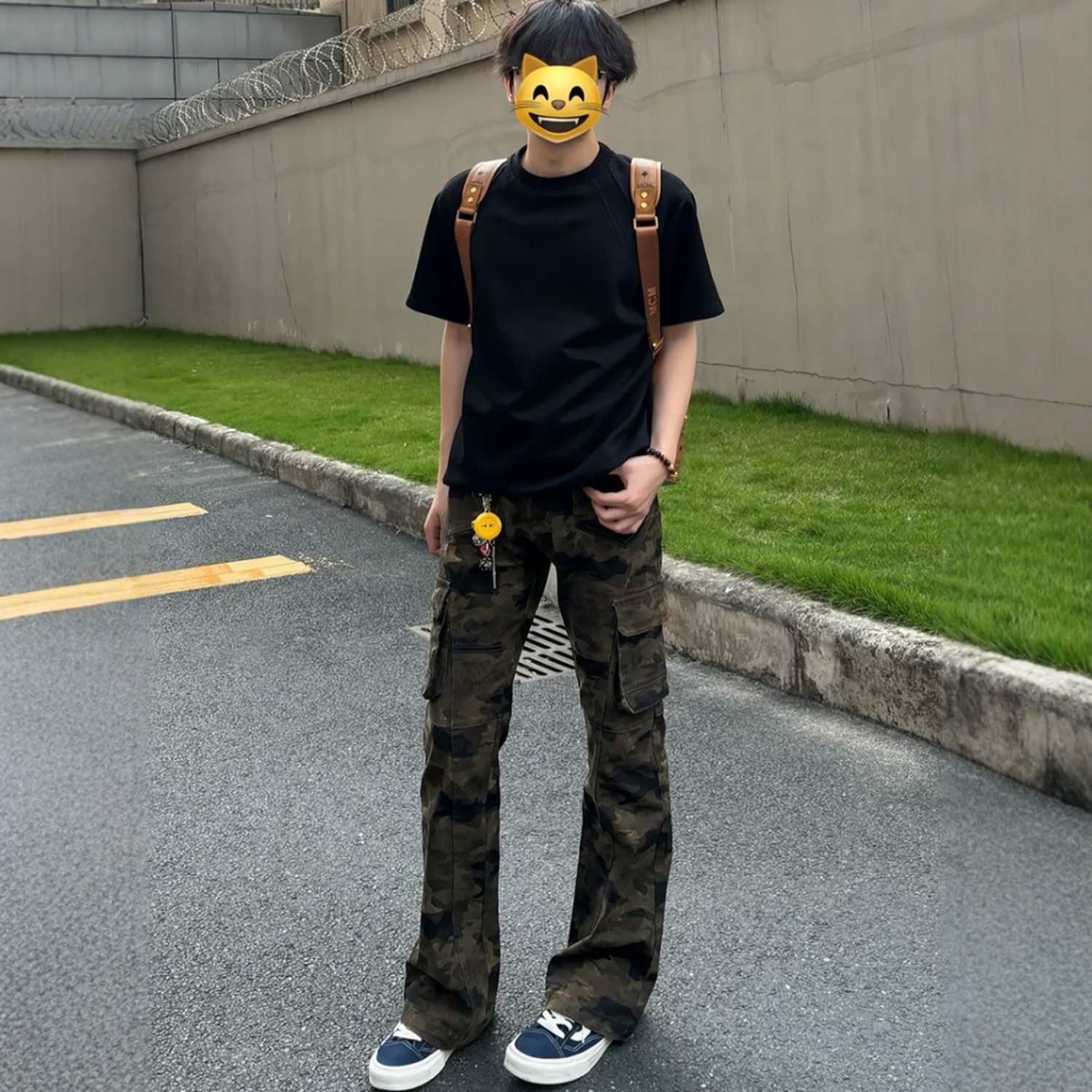 加长迷彩微喇牛仔裤男青少年