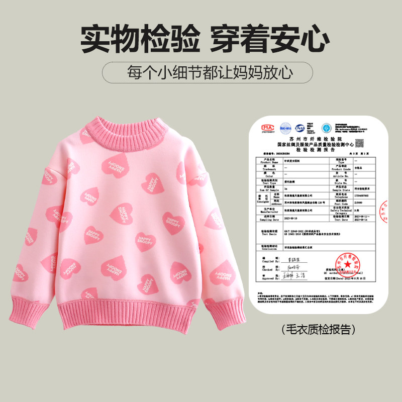 史努比童装儿童毛衣秋冬2025新款加厚保暖上衣女童冬季加绒针织衫
