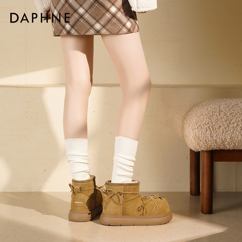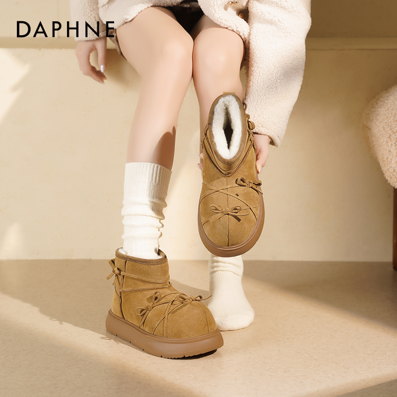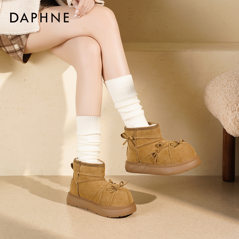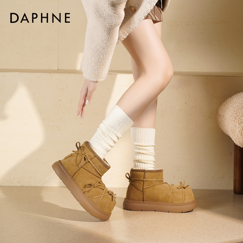 达芙妮厚底雪地靴女款2025新款冬季大头面包鞋加绒短靴保暖棉鞋女