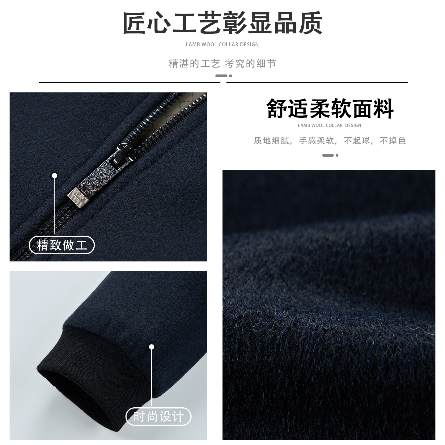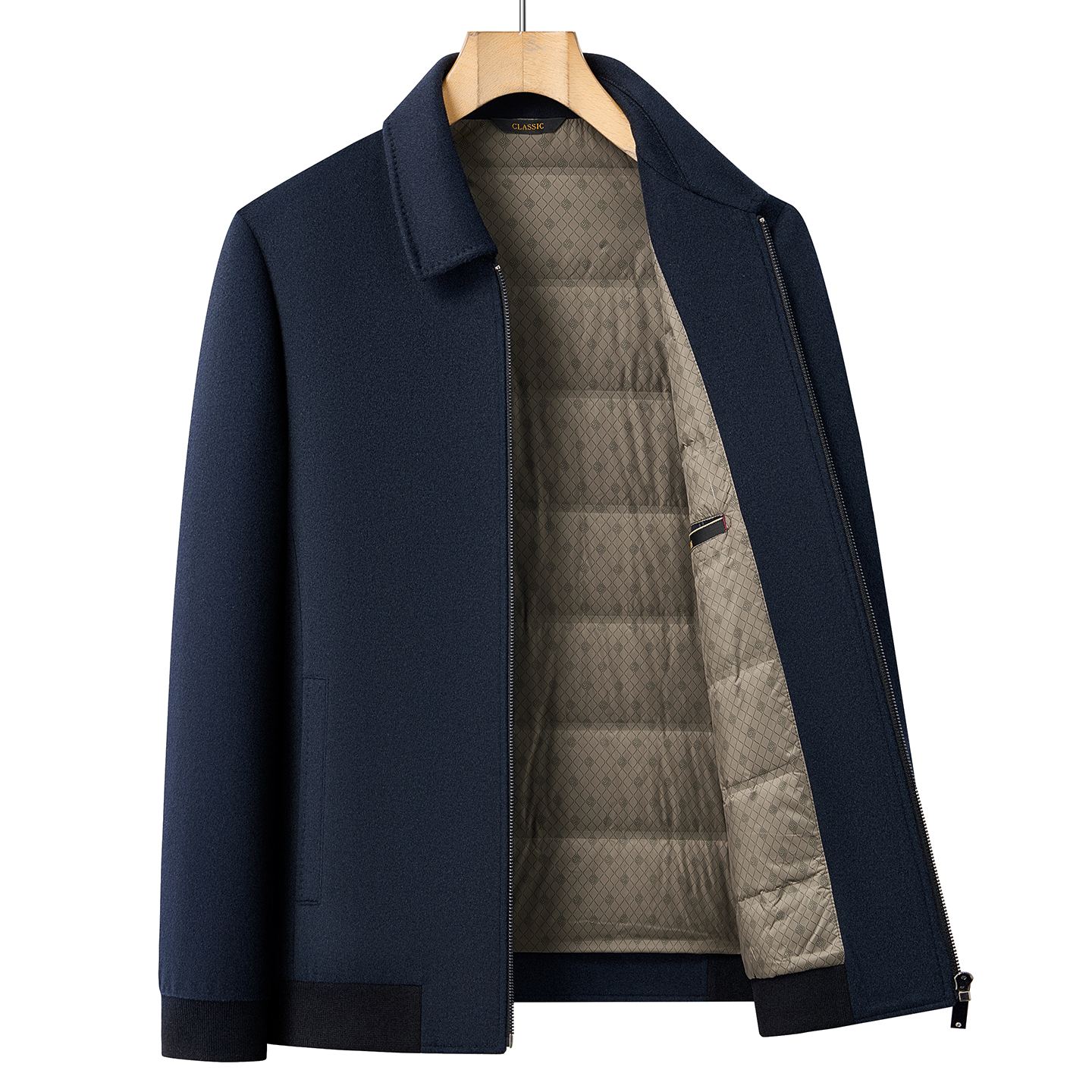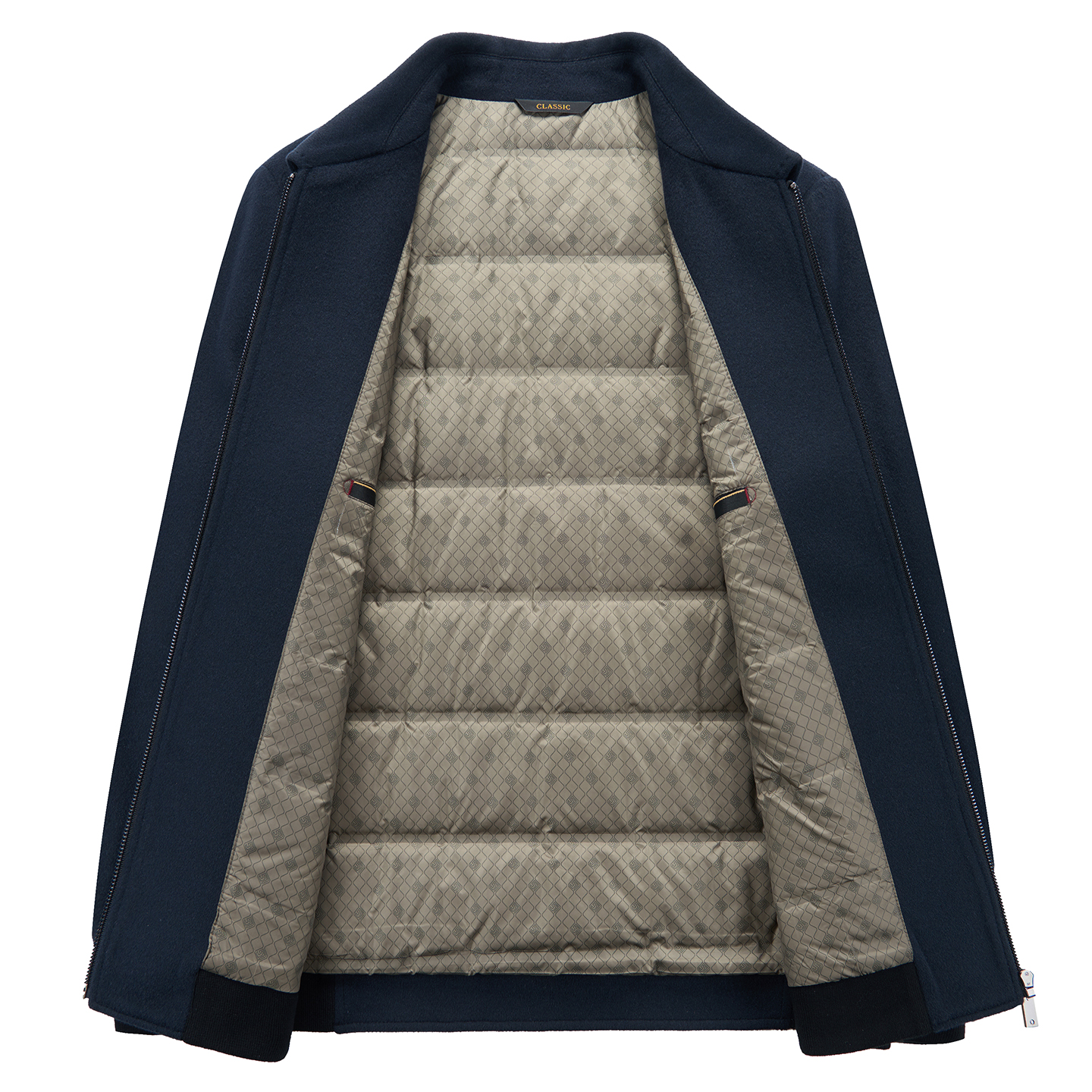 恒源祥100%纯羊毛呢子冬季夹克加厚白鸭绒内胆外套爸爸装男士大衣