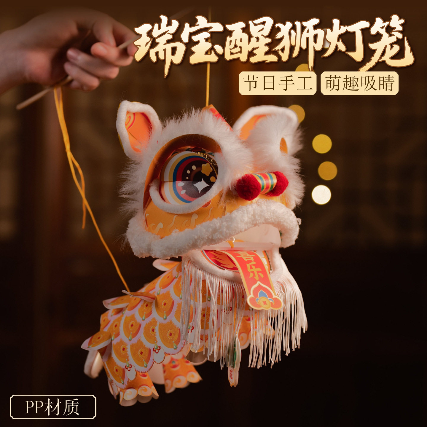 2026新款新年瑞宝醒狮灯笼马年手提灯手工diy制作材料包古风花灯