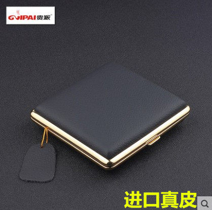 贵派真皮烟盒20支装便携个性超薄男士不锈钢创意随身香烟盒牛皮
