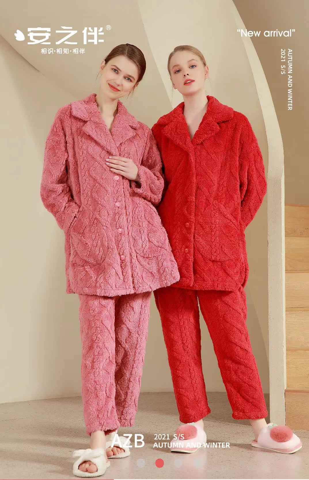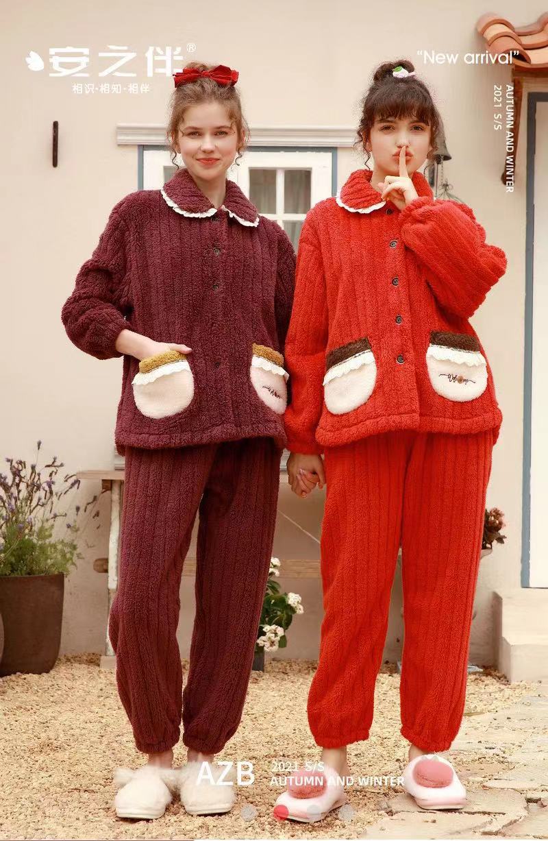 【清仓特价】安之伴专柜款特价加厚珊瑚绒睡衣女秋冬女家居服套装