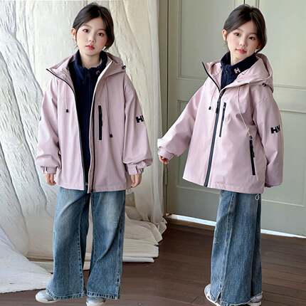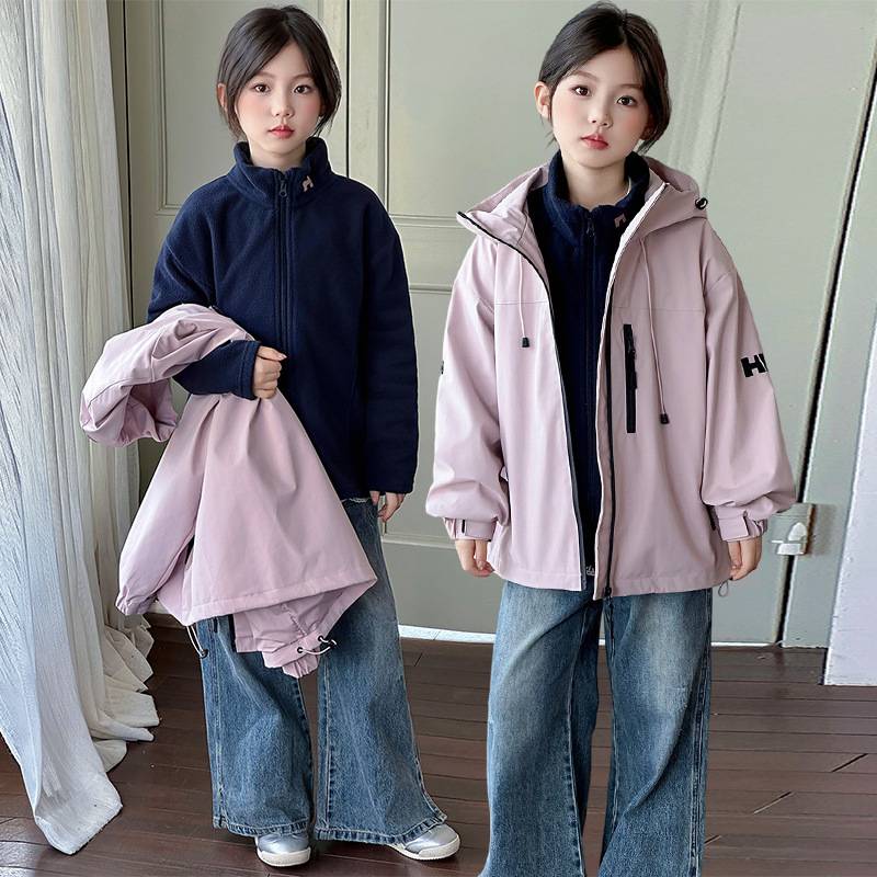 官方正品女童外套2025秋季新款儿童冲锋衣三合一宝宝摇粒绒内胆两
