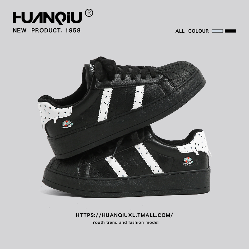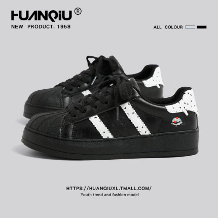 环球黑色贝壳头滑板鞋女2025春夏新款运动休闲鞋子学生百搭德训鞋