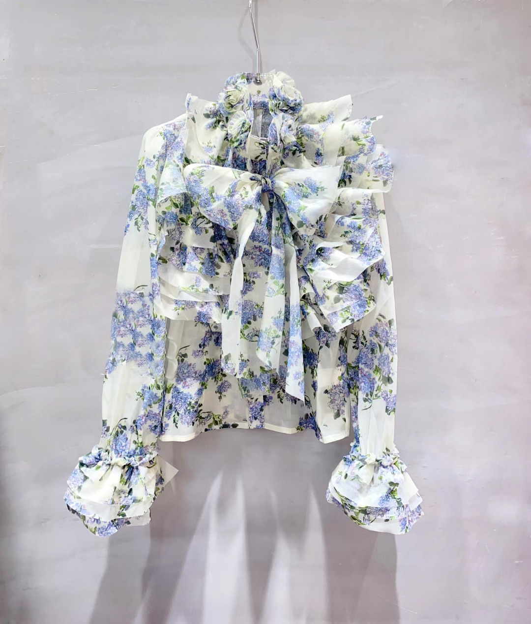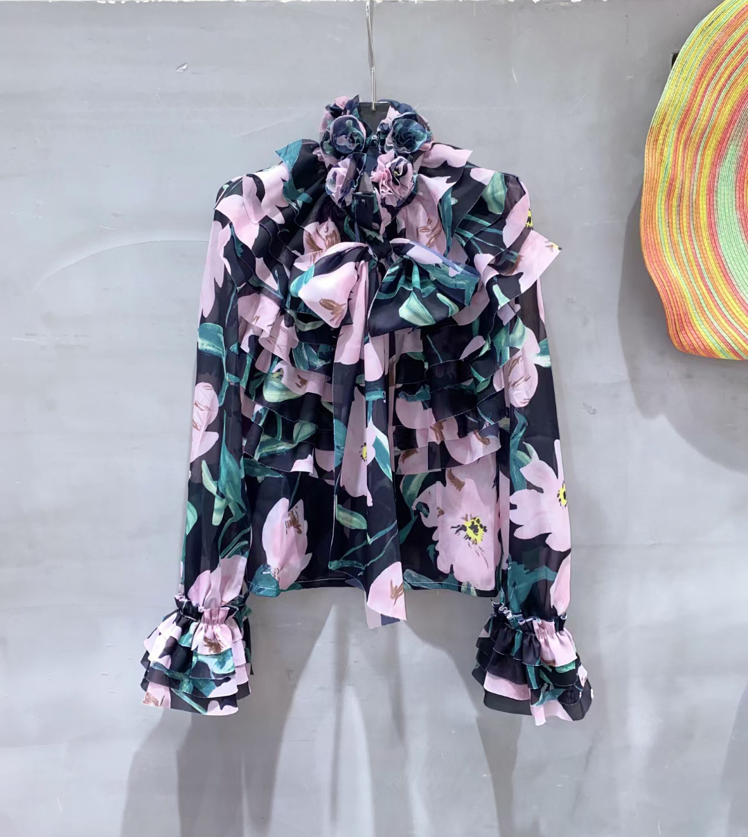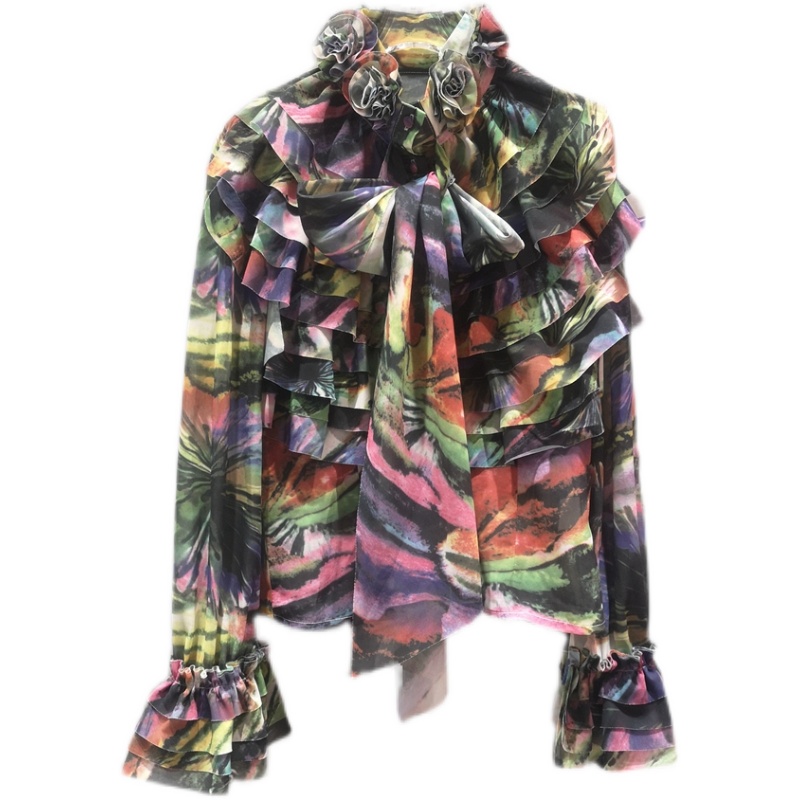 长袖雪纺荷叶边宫廷衬衫