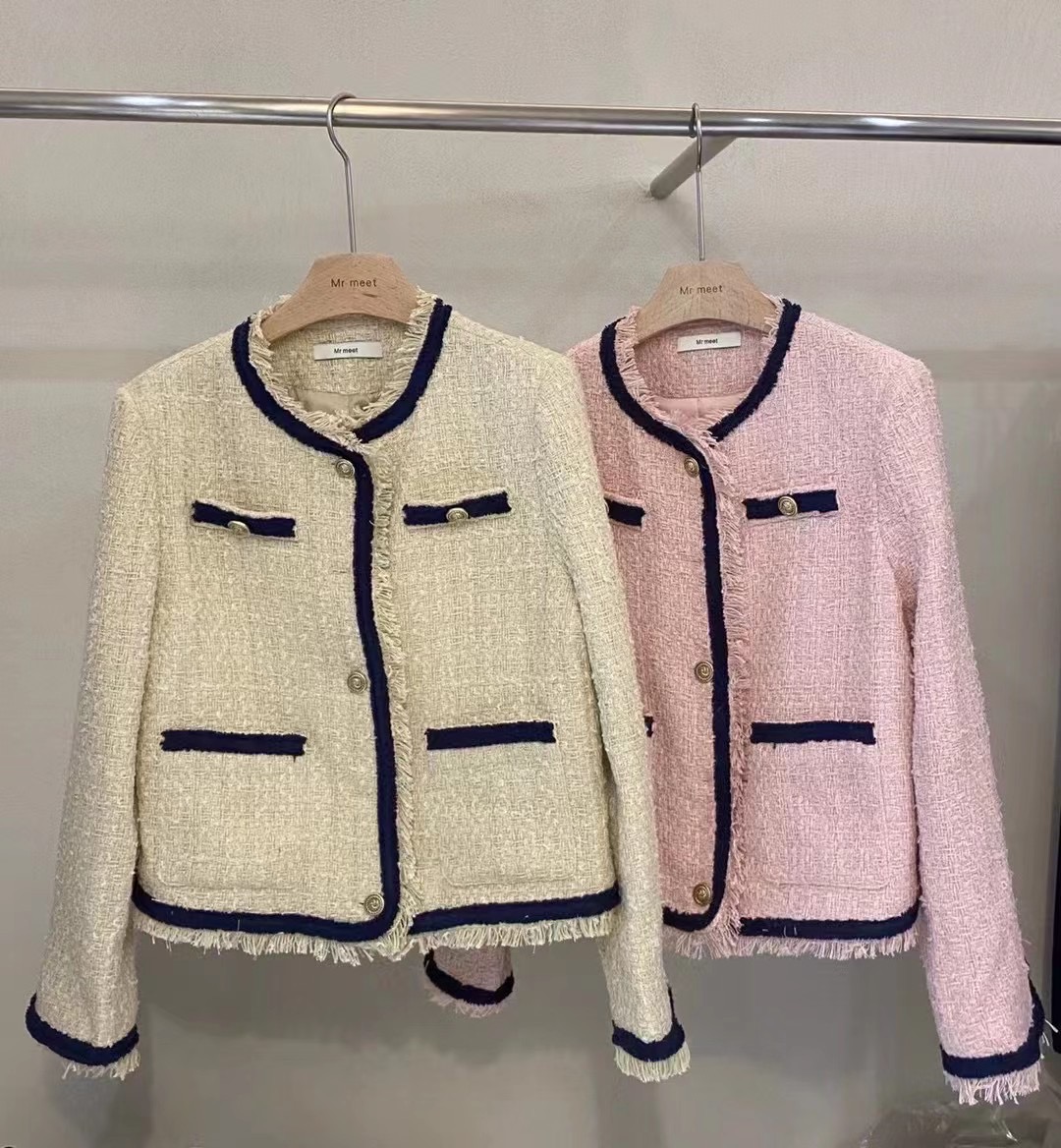 Mr meet 法式小香风外套女春秋韩国高级感撞色白富美漂亮短款上衣