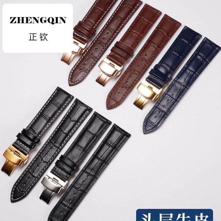 正钦雷帝真皮手表带男士女牛皮带针扣适用天王dw卡西欧浪琴精工CK