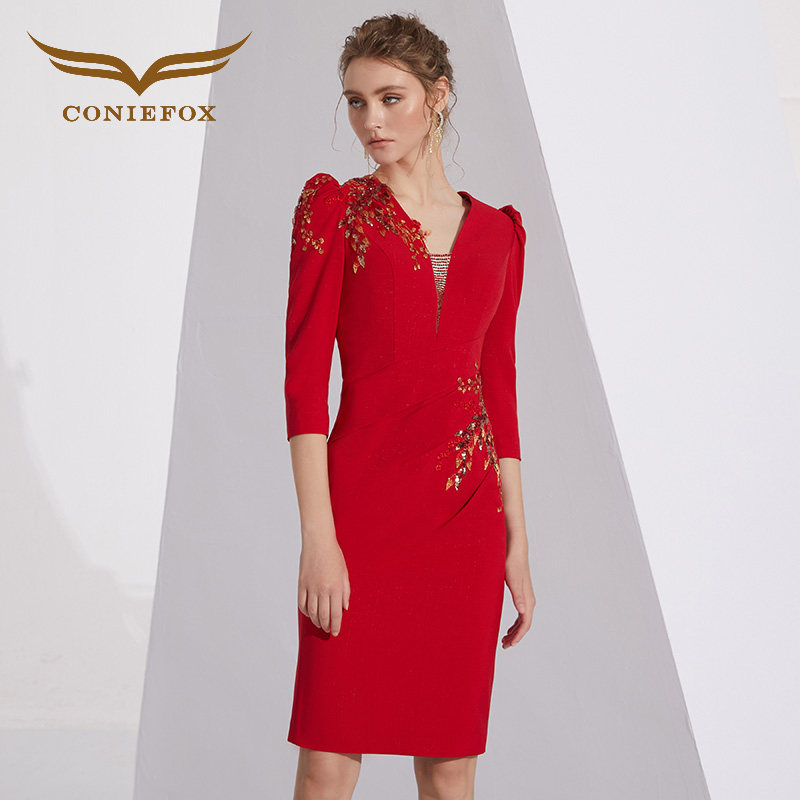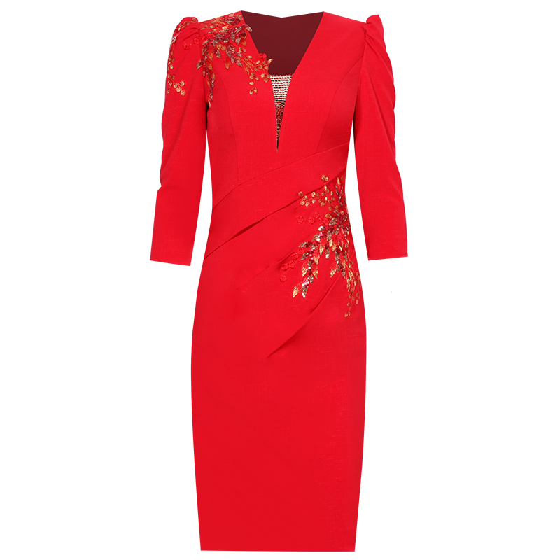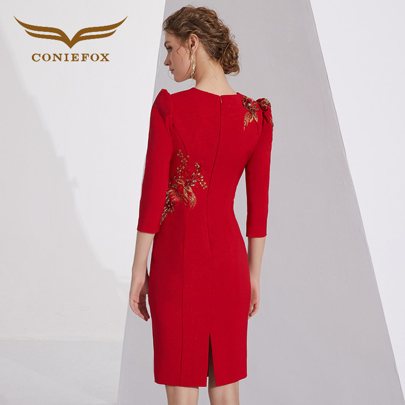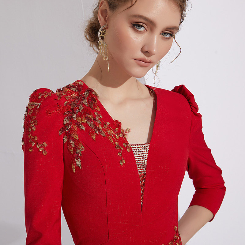创意狐敬酒服冬季新娘回门便装红色结婚婚礼礼服修身气质订婚衣服