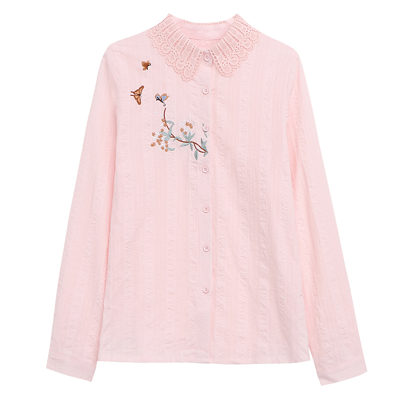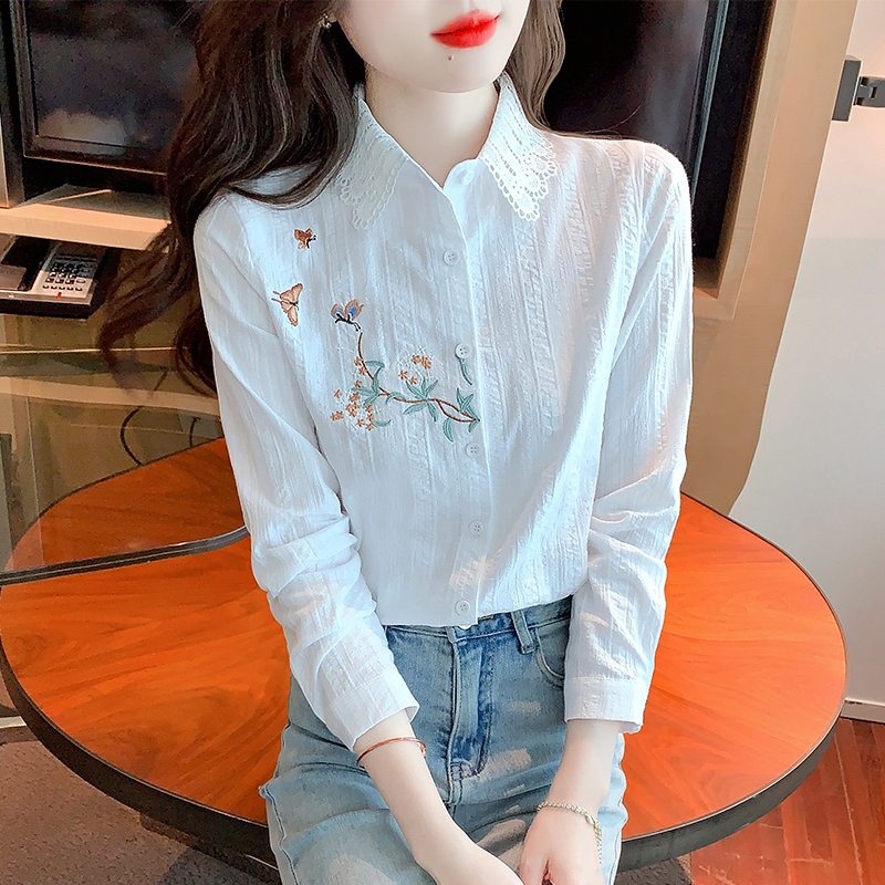 2025秋装新款蕾丝花边娃娃领刺绣衬衫女长袖时尚百搭上衣女士衬衣