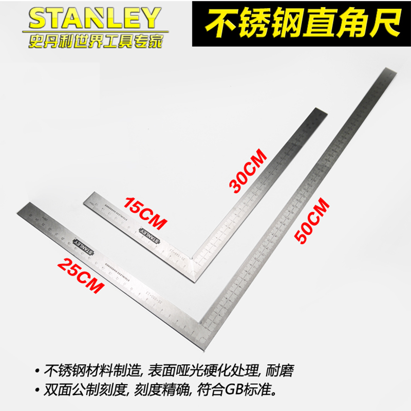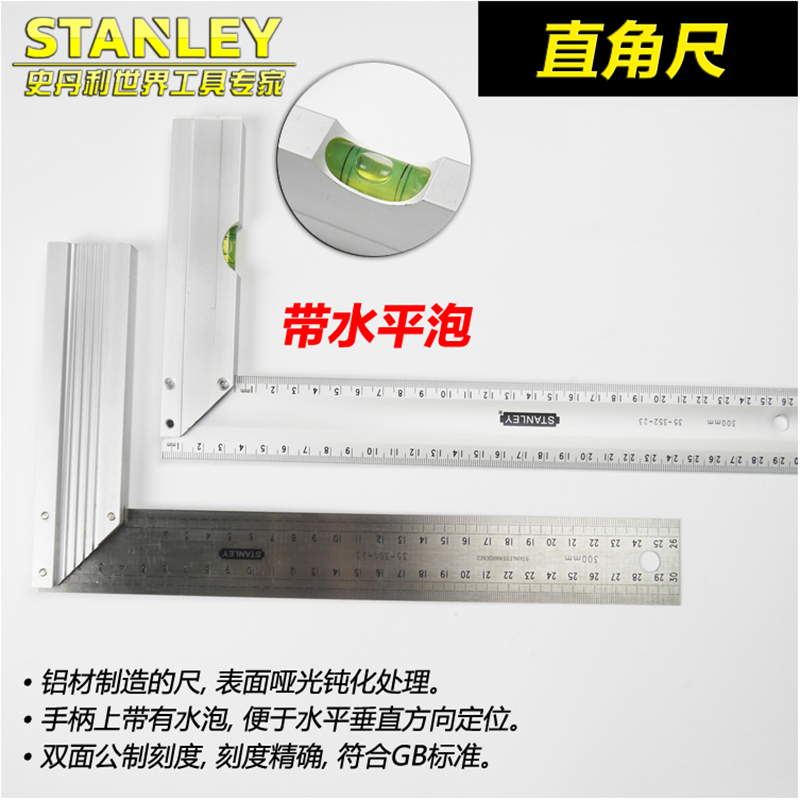 史丹利工具直角尺进口不锈钢活动直角尺90度木工尺带水平尺直角尺