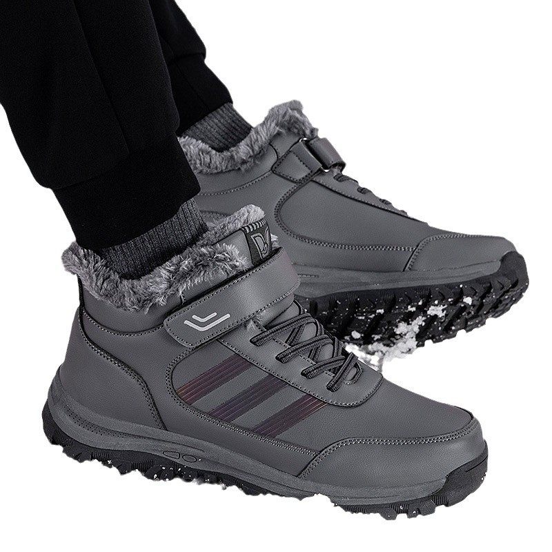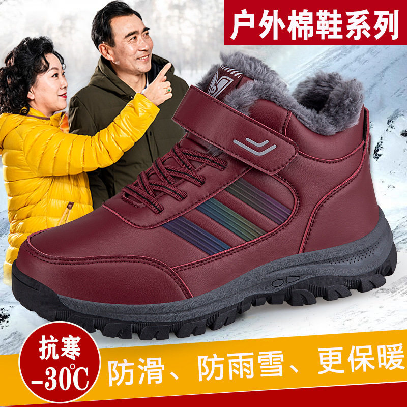 老人鞋男秋冬季保暖加绒加厚爸爸棉鞋防滑防水中老年雪地靴女抗寒