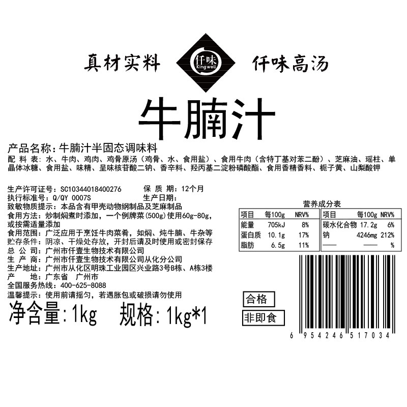 仟味牛腩汁1KG 焖牛腩酱 牛腩煲酱料 牛腩粉料包 牛杂牛肉调味酱