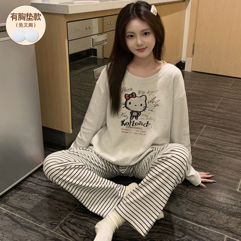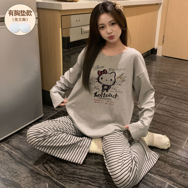 可爱帕恰狗春秋季睡衣女款纯棉带胸垫长袖2025新款卡通网红款套装