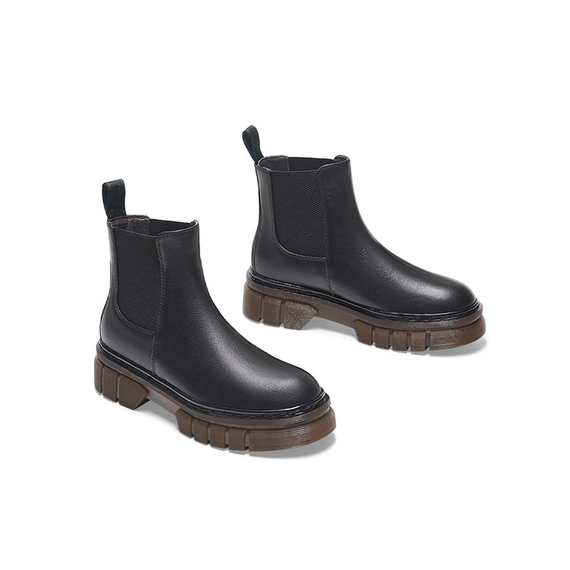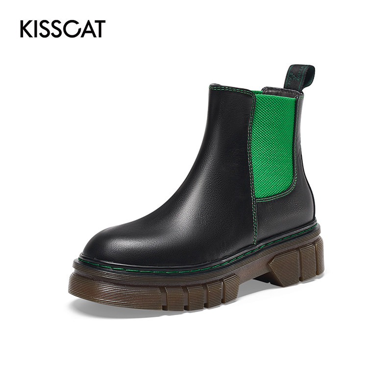 KISS CAT/接吻猫秋冬圆头牛皮短筒增高厚底切尔西靴女KA32742-53