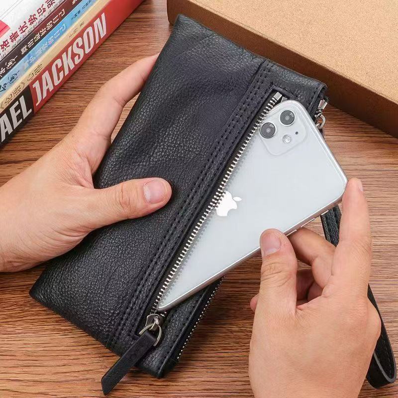 男士手包头层牛皮钱包女长款真皮多功能简约拉链手拿包手机包钱夹
