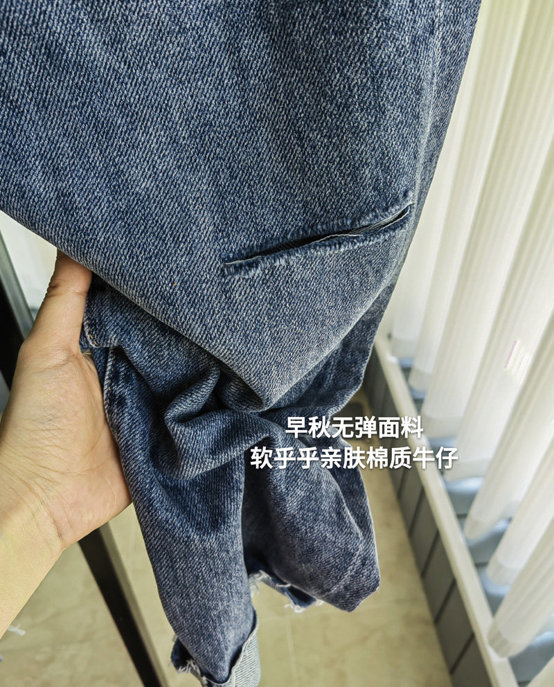 宽松垮裤九分偏薄无弹牛仔
