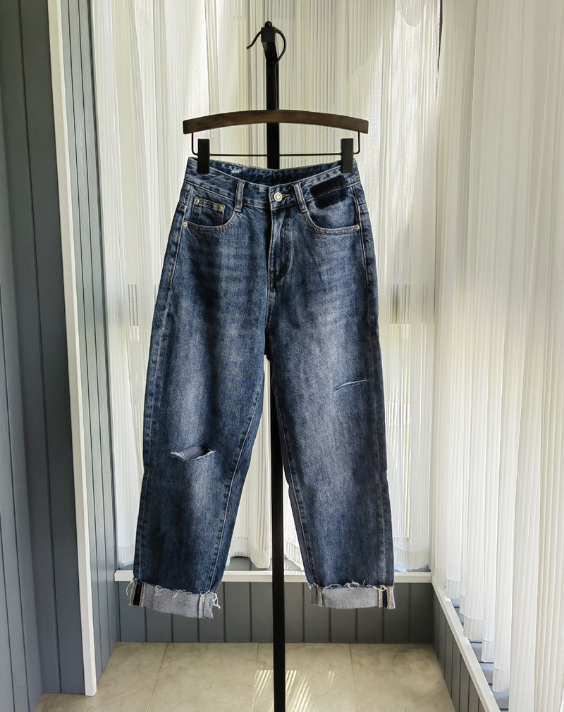 早秋港风帅气街头范BF男友裤破洞九分宽松垮裤无弹牛仔裤女9503
