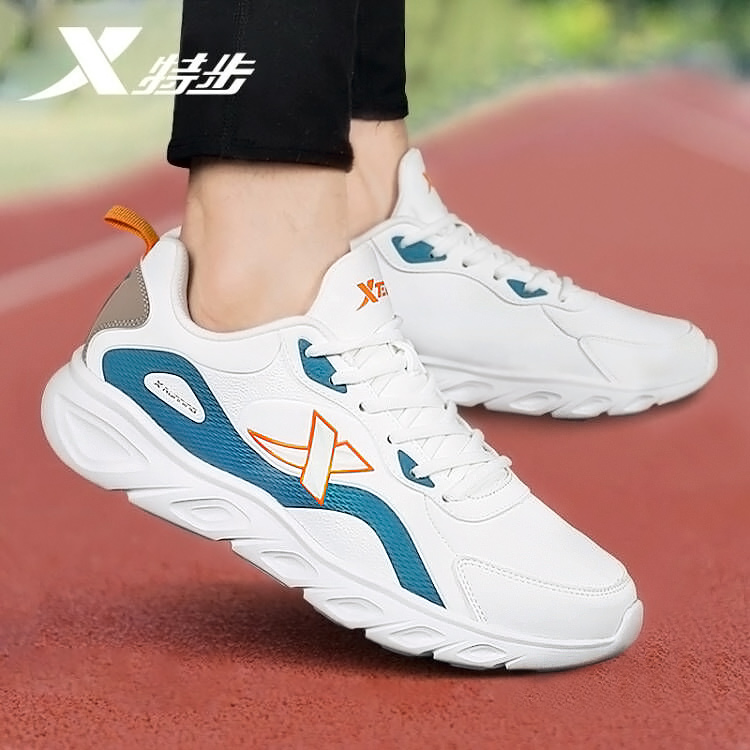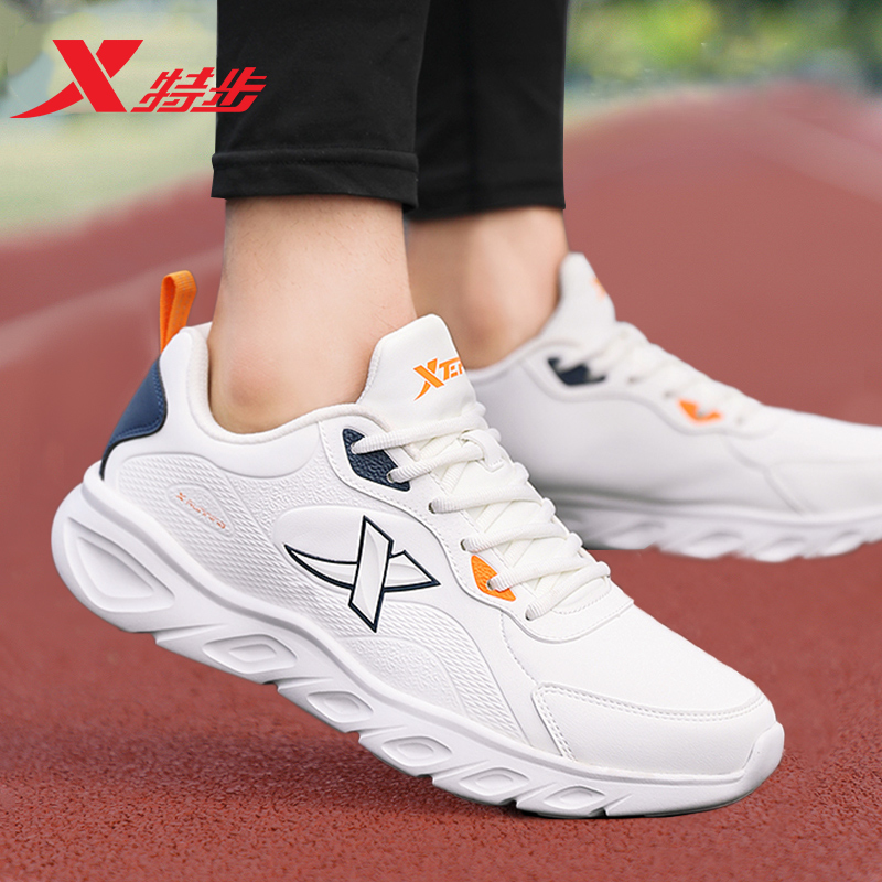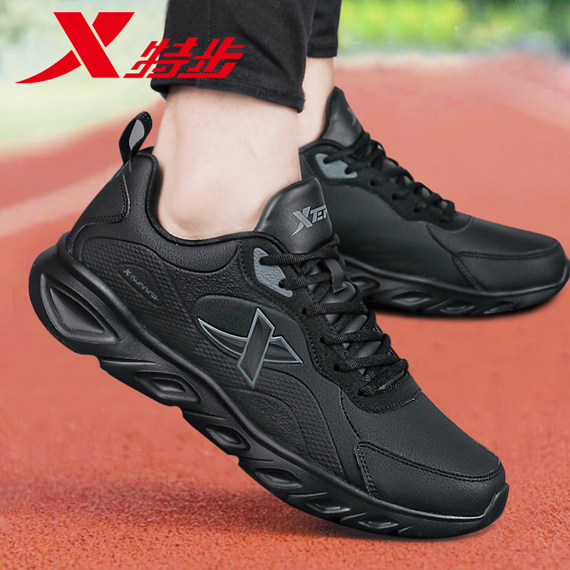 特步男鞋跑步鞋秋季官方旗舰店正品皮面防水轻便休闲鞋运动鞋男款
