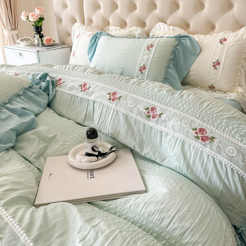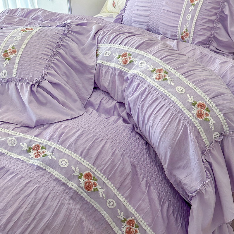 泡泡纱水洗棉四件套全棉纯棉公主风少女裸睡牀笠牀单被套牀上用品