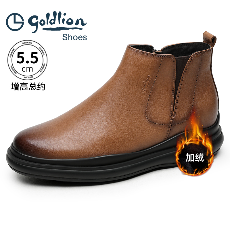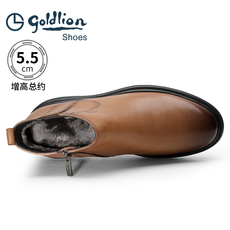 金利来男靴冬季新款切尔西靴绒里保暖商务正装靴内增高真皮靴子男