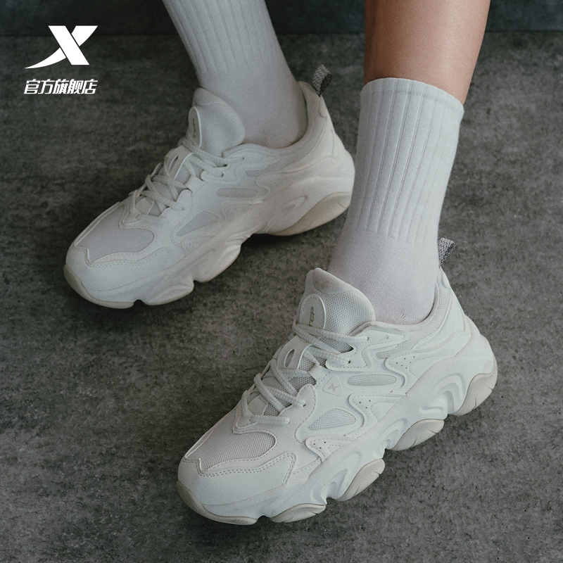 特步游牧丨休闲鞋女鞋厚底轻便百搭网面透气情侣老爹鞋男鞋运动鞋
